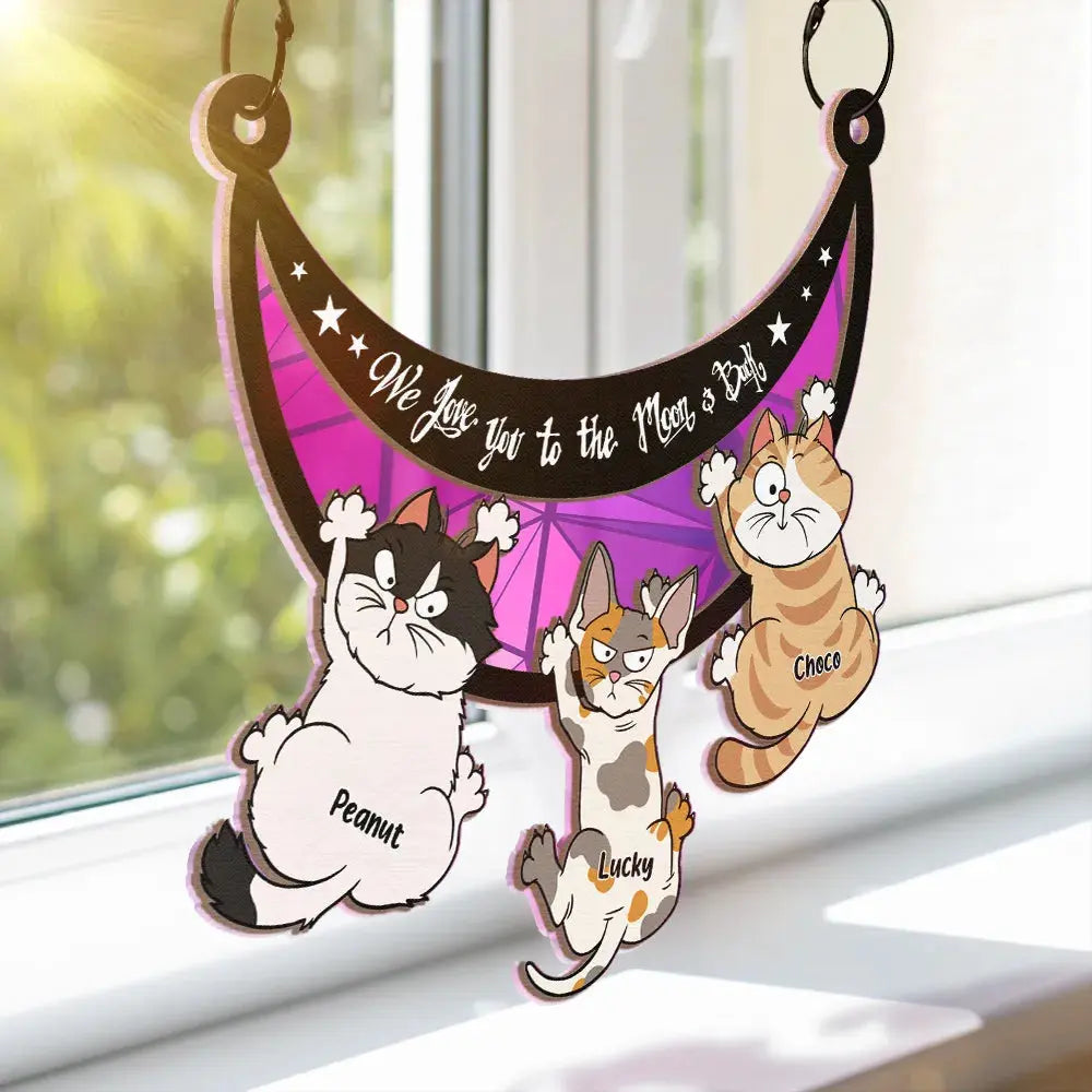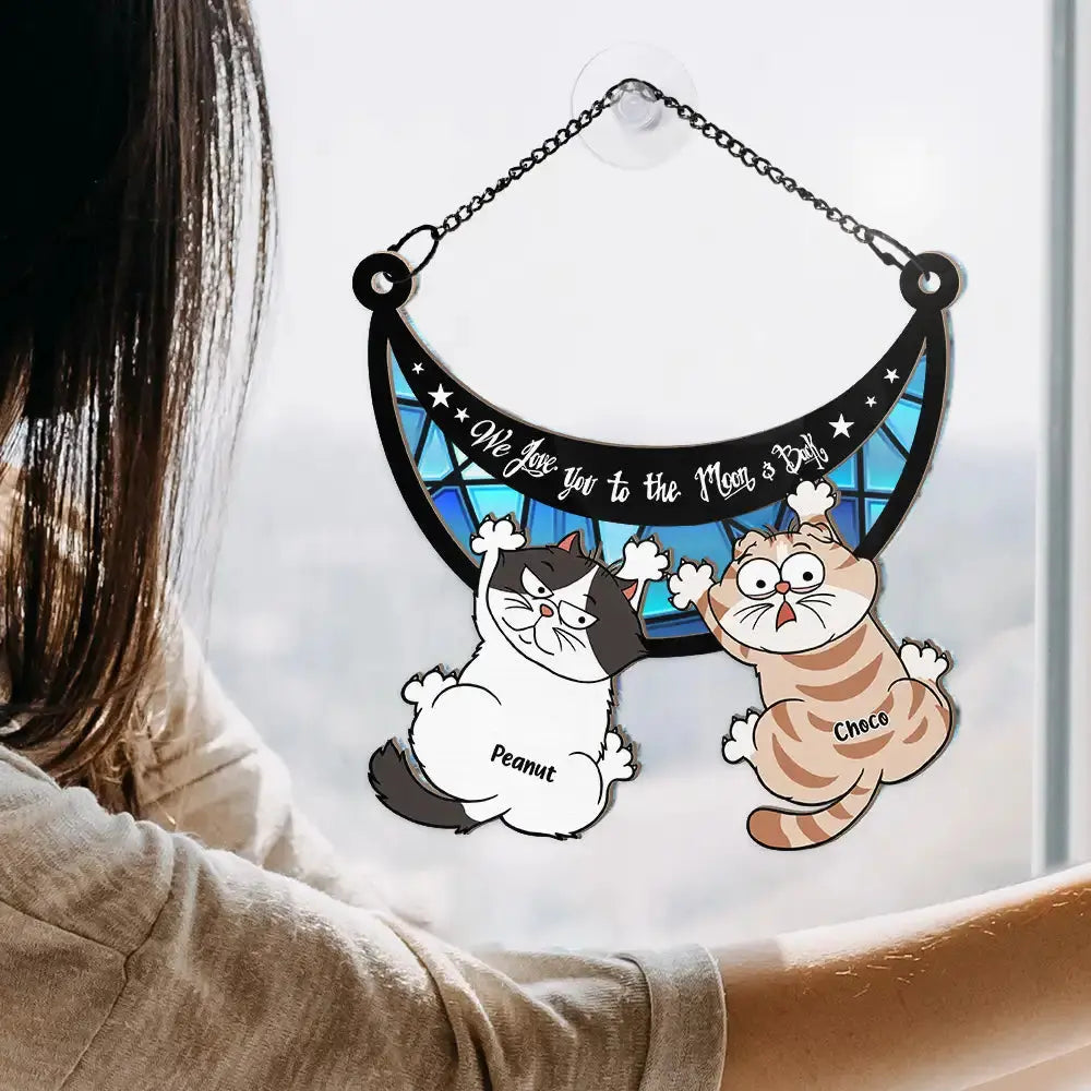 Scratching Cats Love You To The Moon And Back - Personalized Window Hanging Suncatcher Ornament Hanging Suncatcher Ornament The Next Custom Gift
