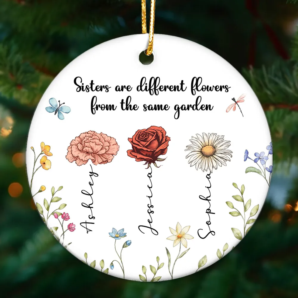 Sisters Are Different Flowers From The Same Garden Personalized Acrylic Ornament, Christmas Gift For Sisters, Siblings, Besties