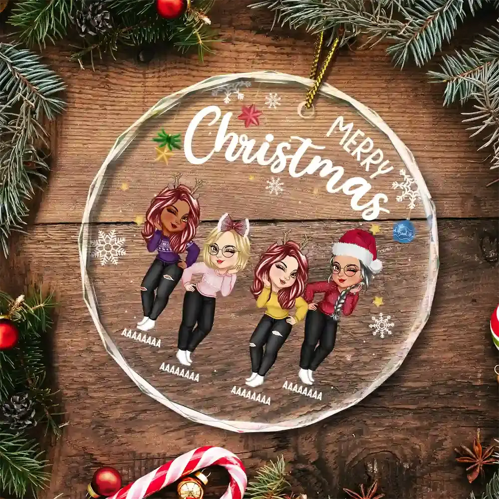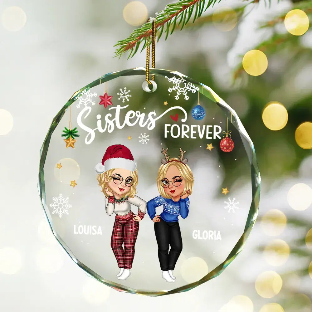 Sisters Besties Forever Christmas - Personalized Circle Glass Ornament ornament The Next Custom Gift