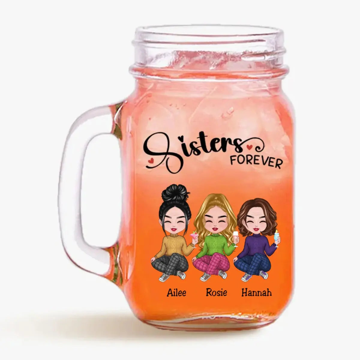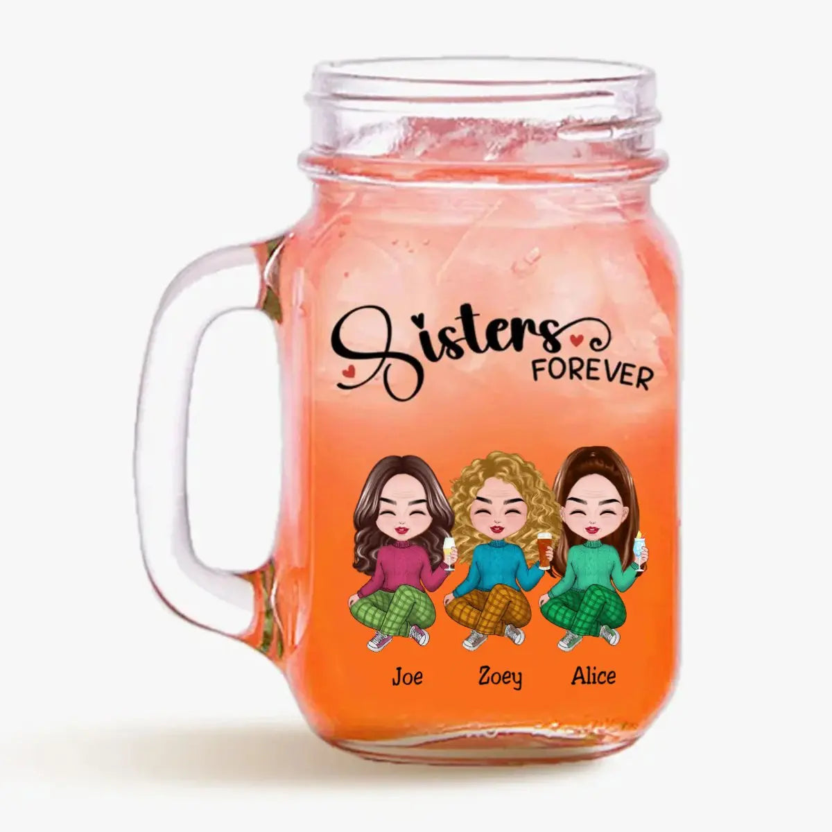 Sisters - Sisters Forever - Personalize Drinking Jar Drinking Jar The Next Custom Gift