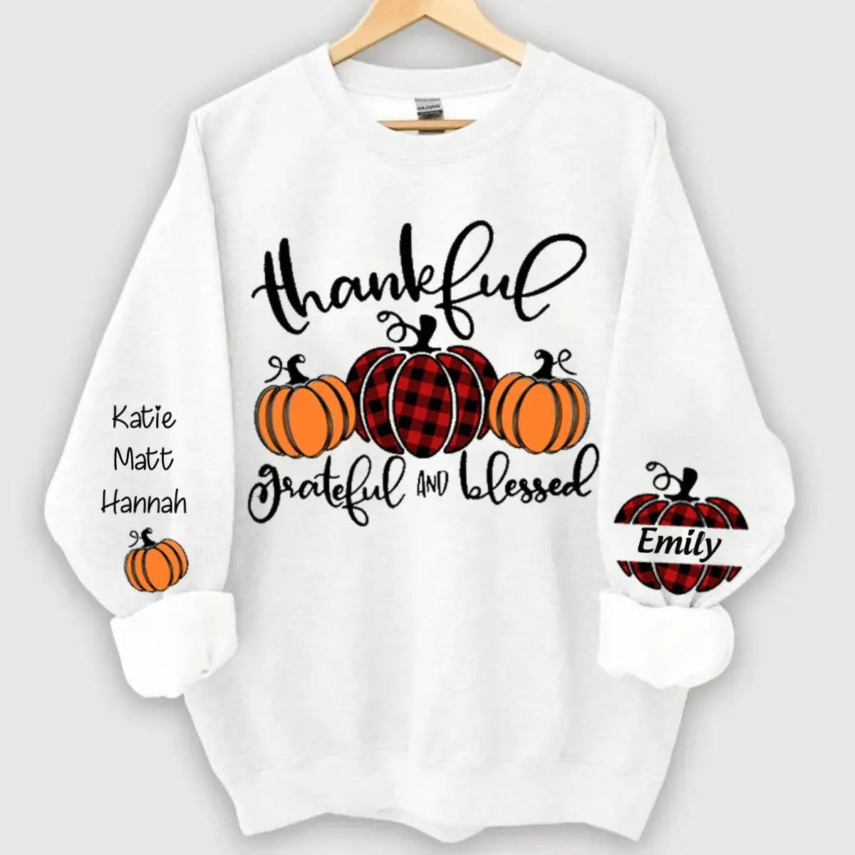 Thankful Grateful And Blessed Grandma Pumpkin With Grandkids Sweatshirt
