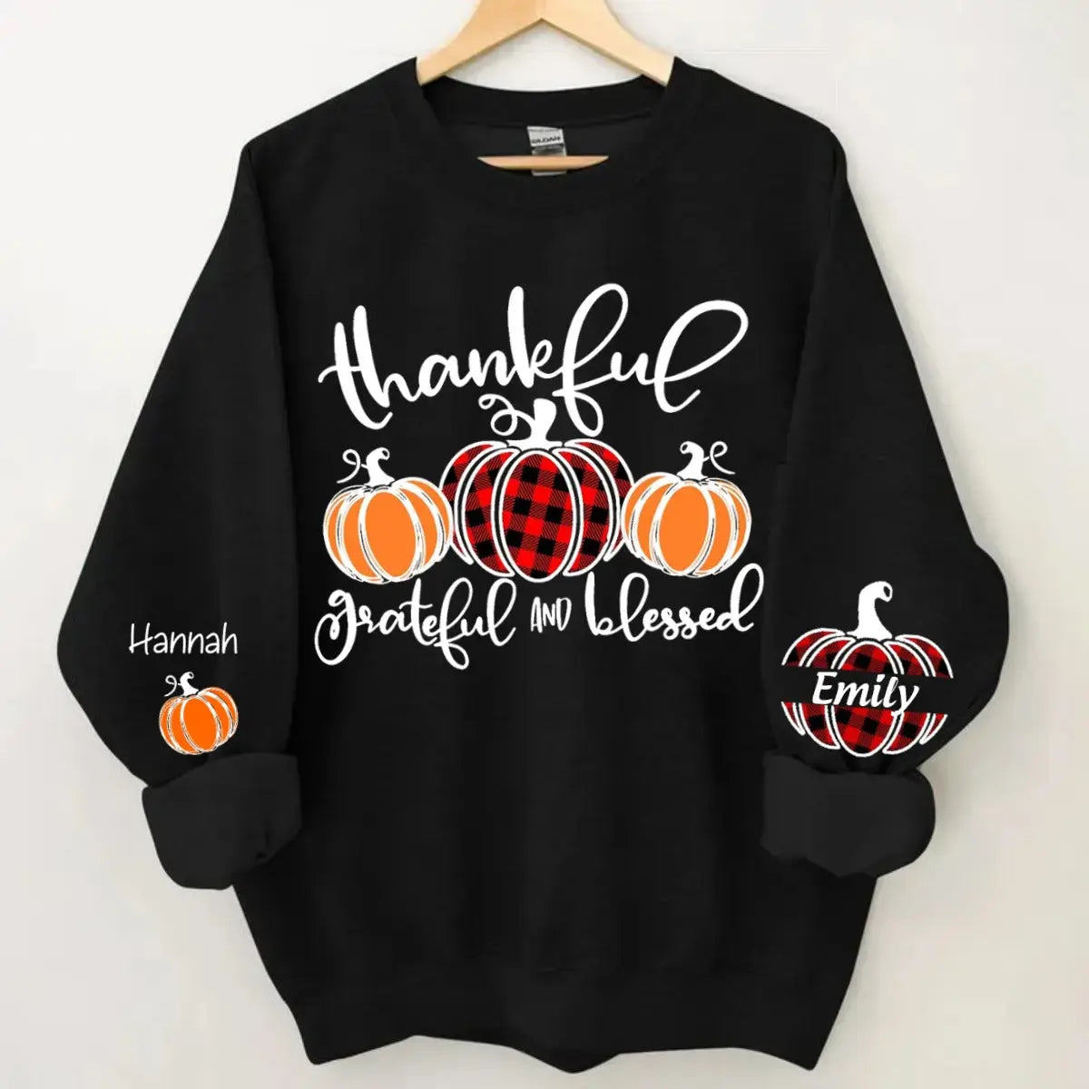 Thankful Grateful And Blessed Grandma Pumpkin With Grandkids Sweatshirt Shirts & Tops The Next Custom Gift