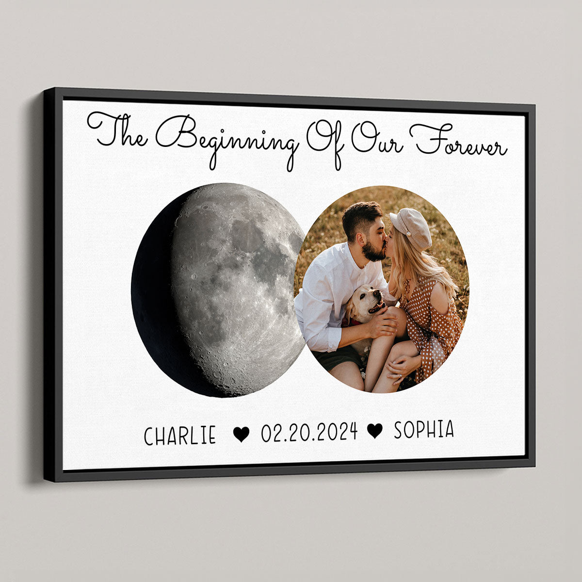 The Beginning Of Our Forever Couple Upload Photo Custom Moon Phases Anniversary Date Personalized Poster, Anniversary Gift, Wedding Gift For Couple