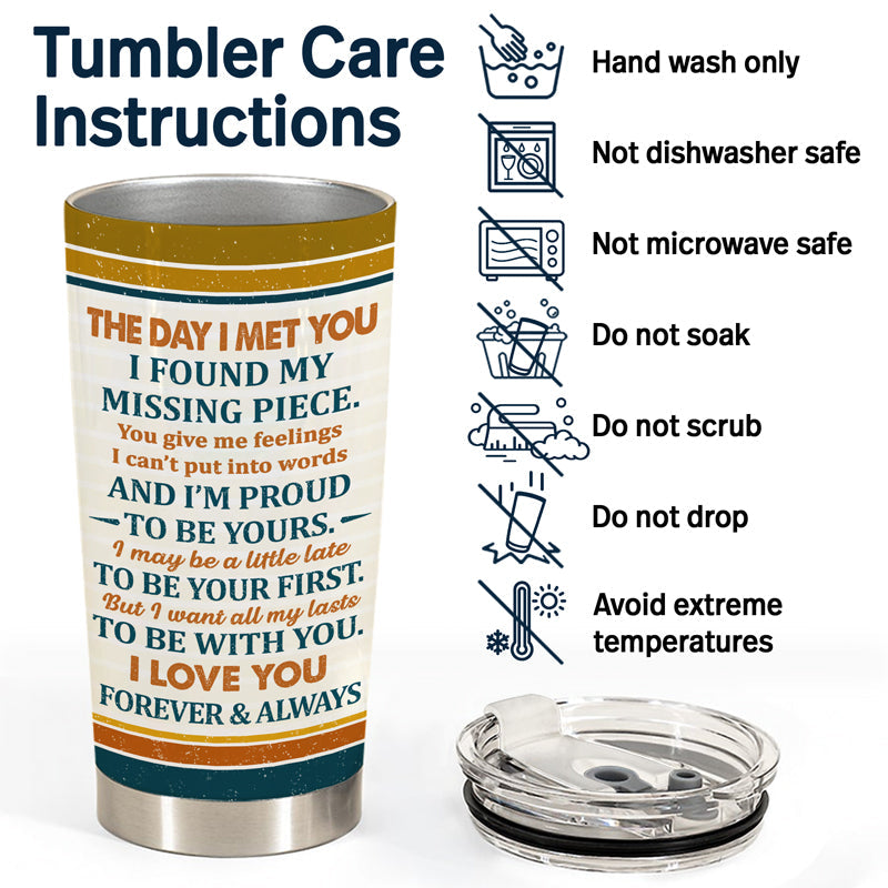 The Day I Met You I Found My Missing Piece Chibi Retro - Gift For Couples - Personalized Custom Tumbler