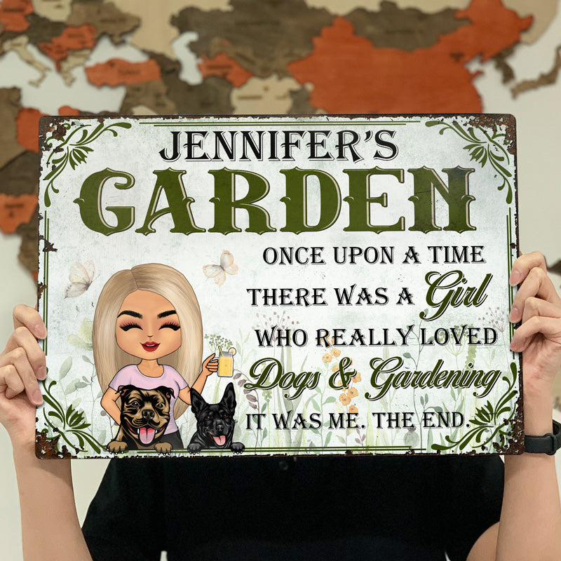 There Was A Girl Who Loves Dog And Gardening - Personalized Custom Classic Metal Signs