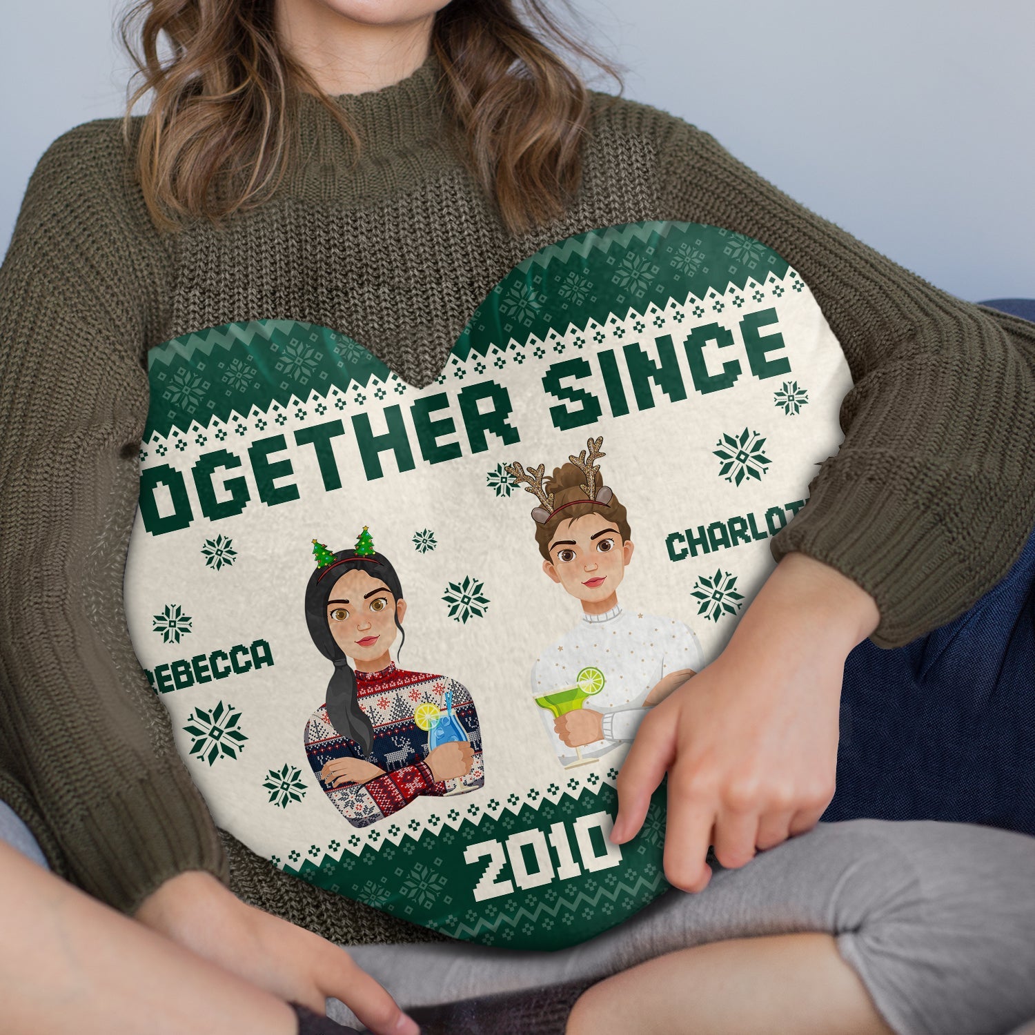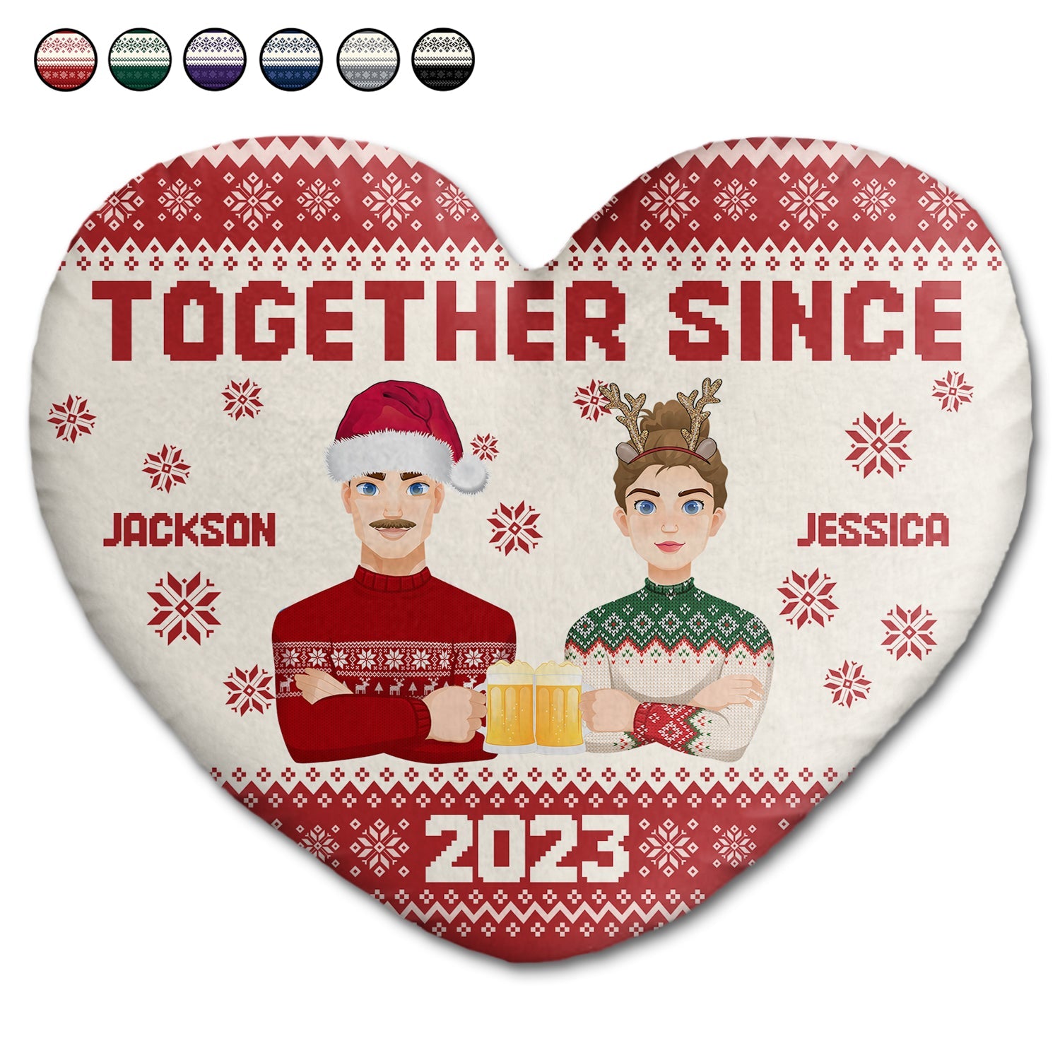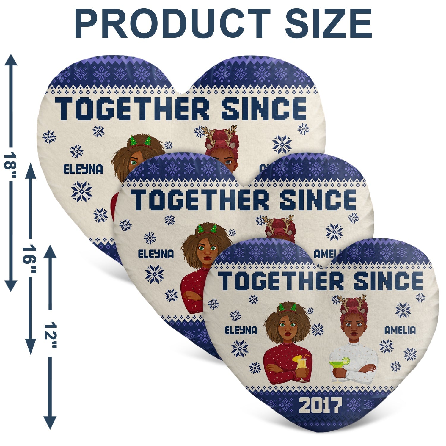 Together Since Flat Art - Gift For Couples, Husband, Wife - Personalized Heart Shaped Pillow