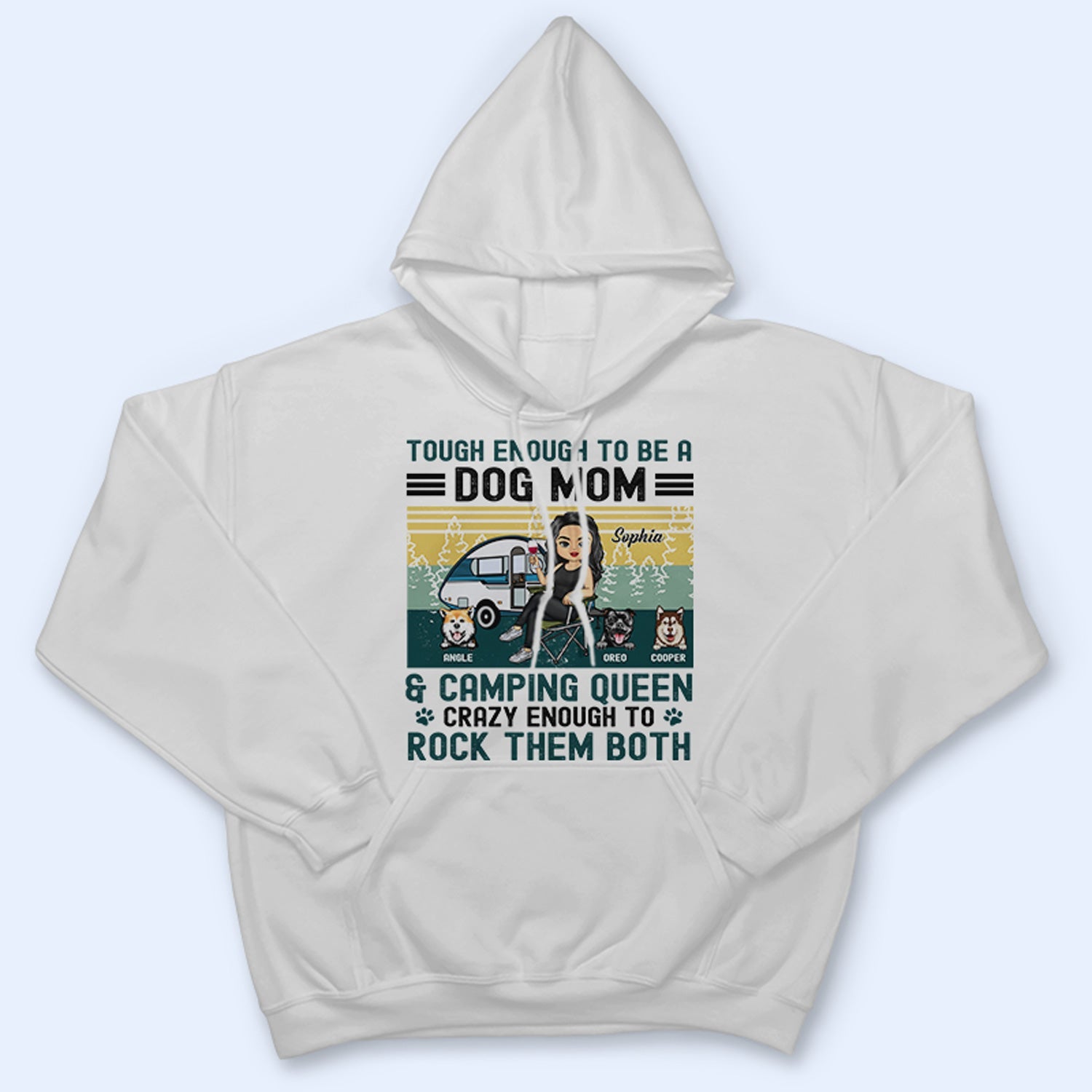 Message: "Tough Enough To Be A Dog Mom & Camping Queen Crazy Enough To Rock Them Both"