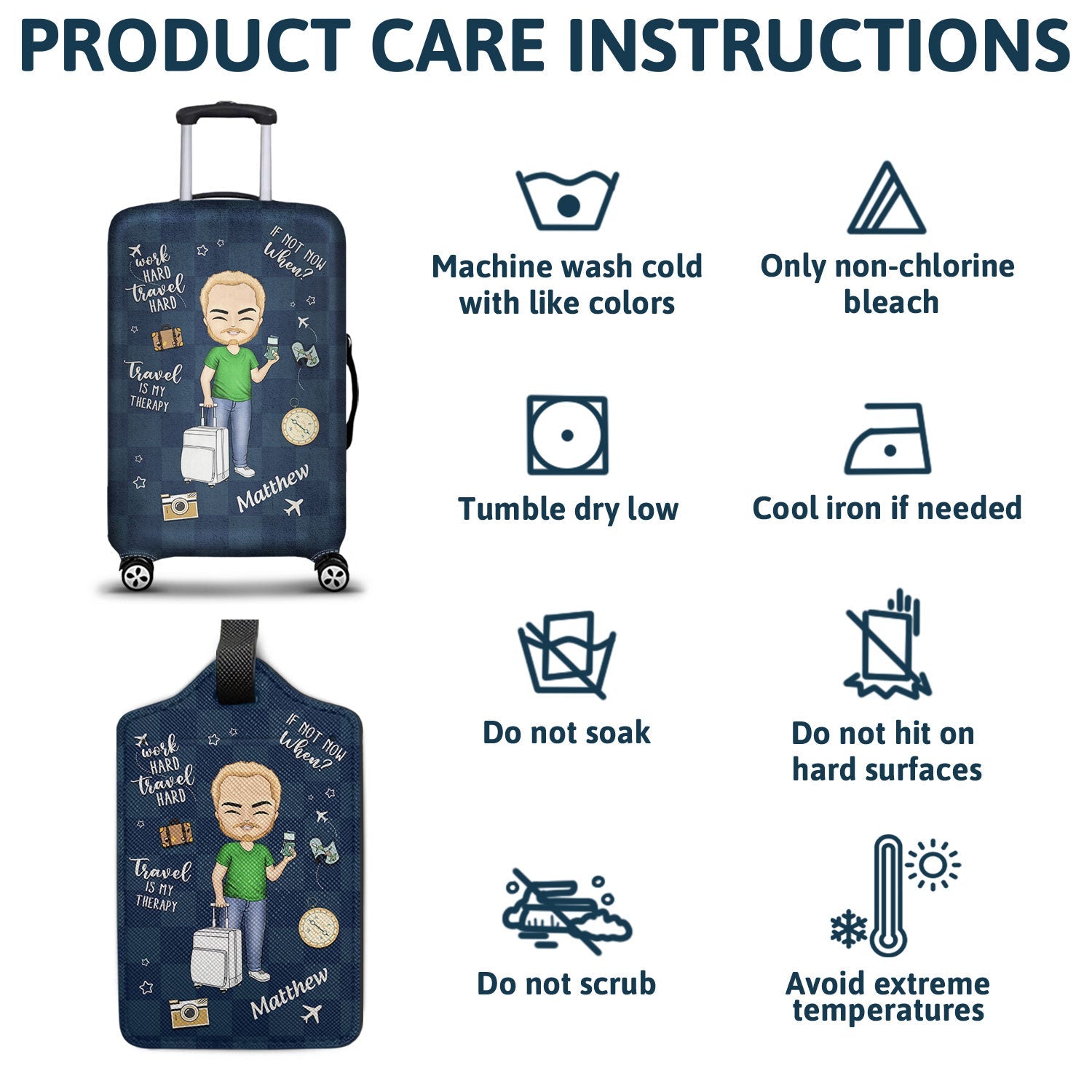 Travel Is My Therapy - Gift For Travelers, Travelling Lovers, Him, Her - Personalized Combo Luggage Cover And Luggage Tag