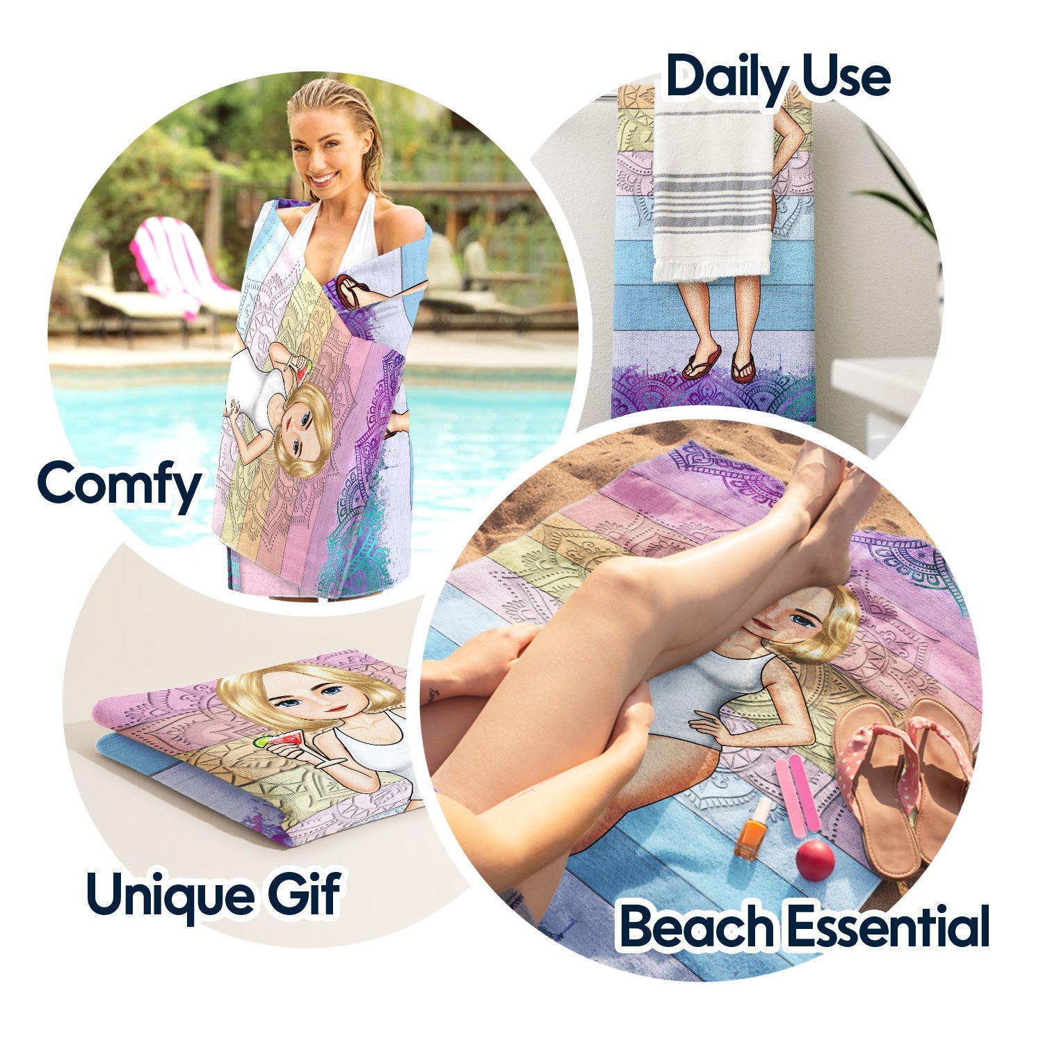 A Personalized Beach Towel, Bath Towel is perfect for relaxation plus staying the dry whole day. It is also a unique item for summertime, great for beach vacations, trips, reunions, pool parties and countless other events.