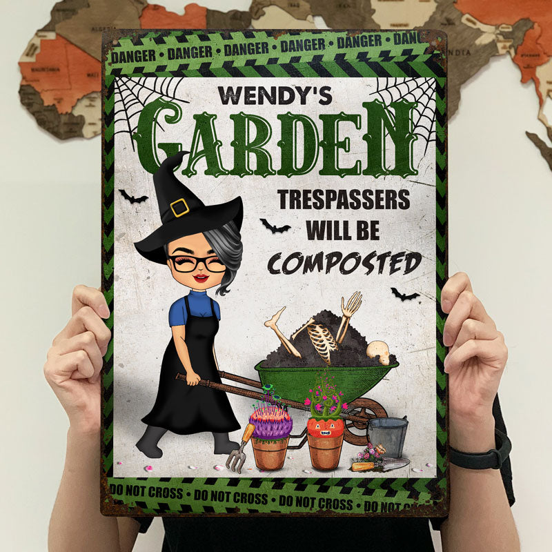 Trespassers Will Be Composted Witch - Garden Decoration - Personalized Custom Classic Metal Signs