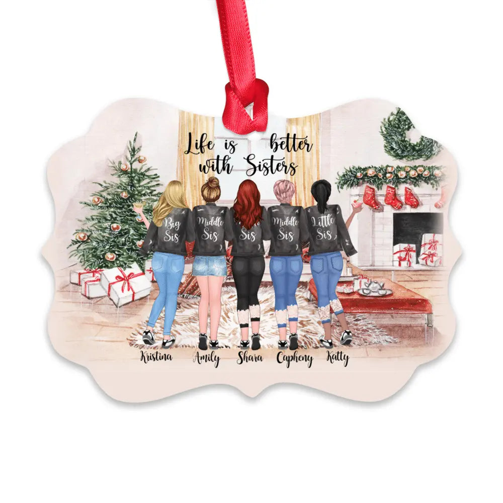 Up to 5 Girls - Life Is Better With Sisters - Personalized Ornament Ornament The Next Custom Gift