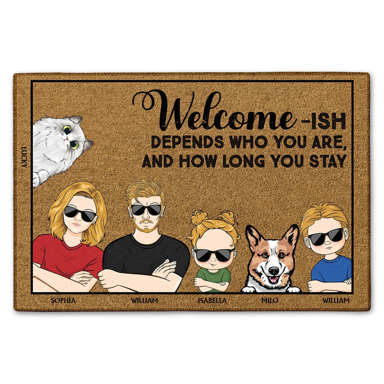 Welcome Ish Depends Who You Are Couples Family Cats Dogs - Home Decor, Birthday, Housewarming Gift For Family - Personalized Custom Doormat