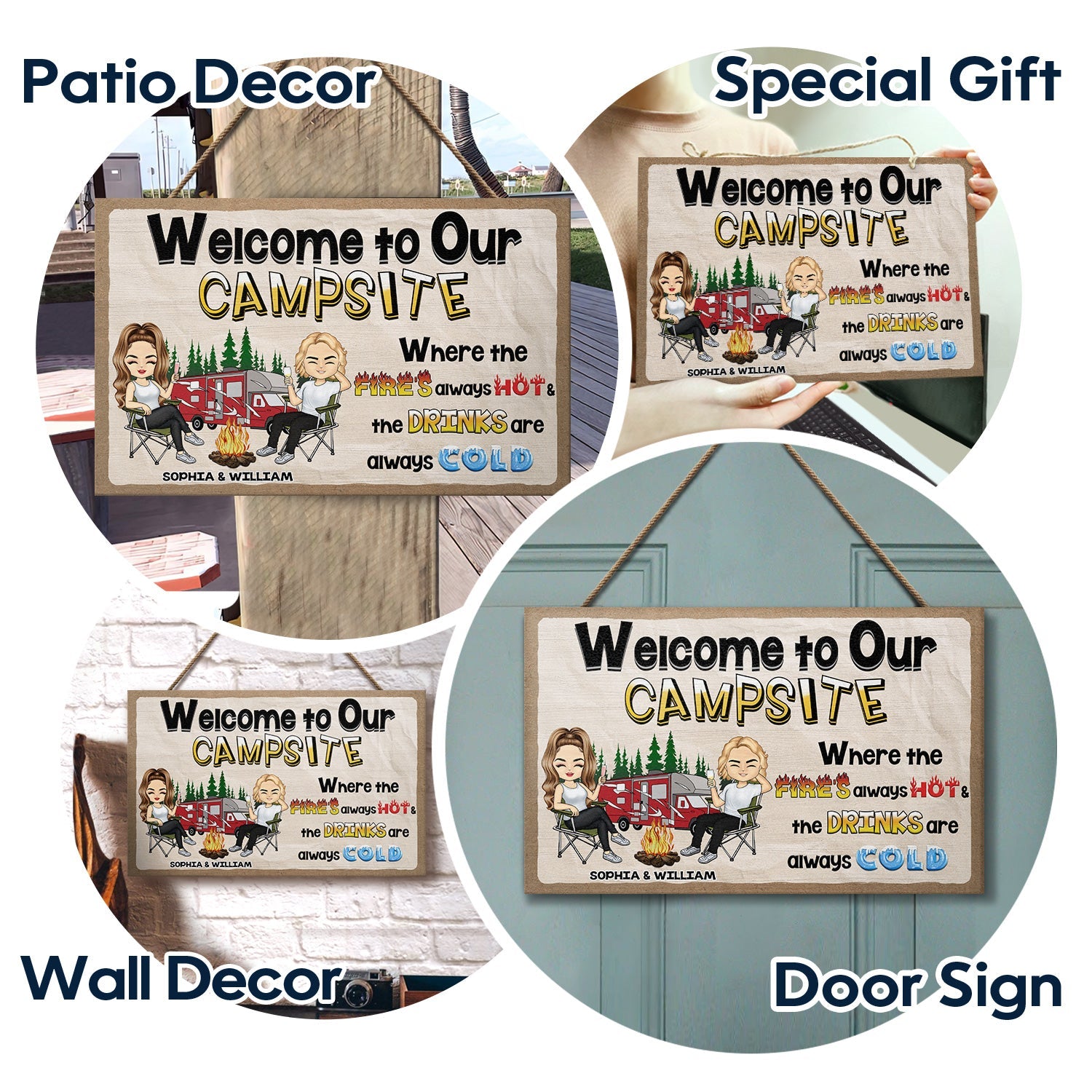 Welcome To Our Campsite - Gift For Campers, Camping Couples, Husband, Wife, Girlfriend, Boyfriend - Personalized Custom Wood Rectangle Sign