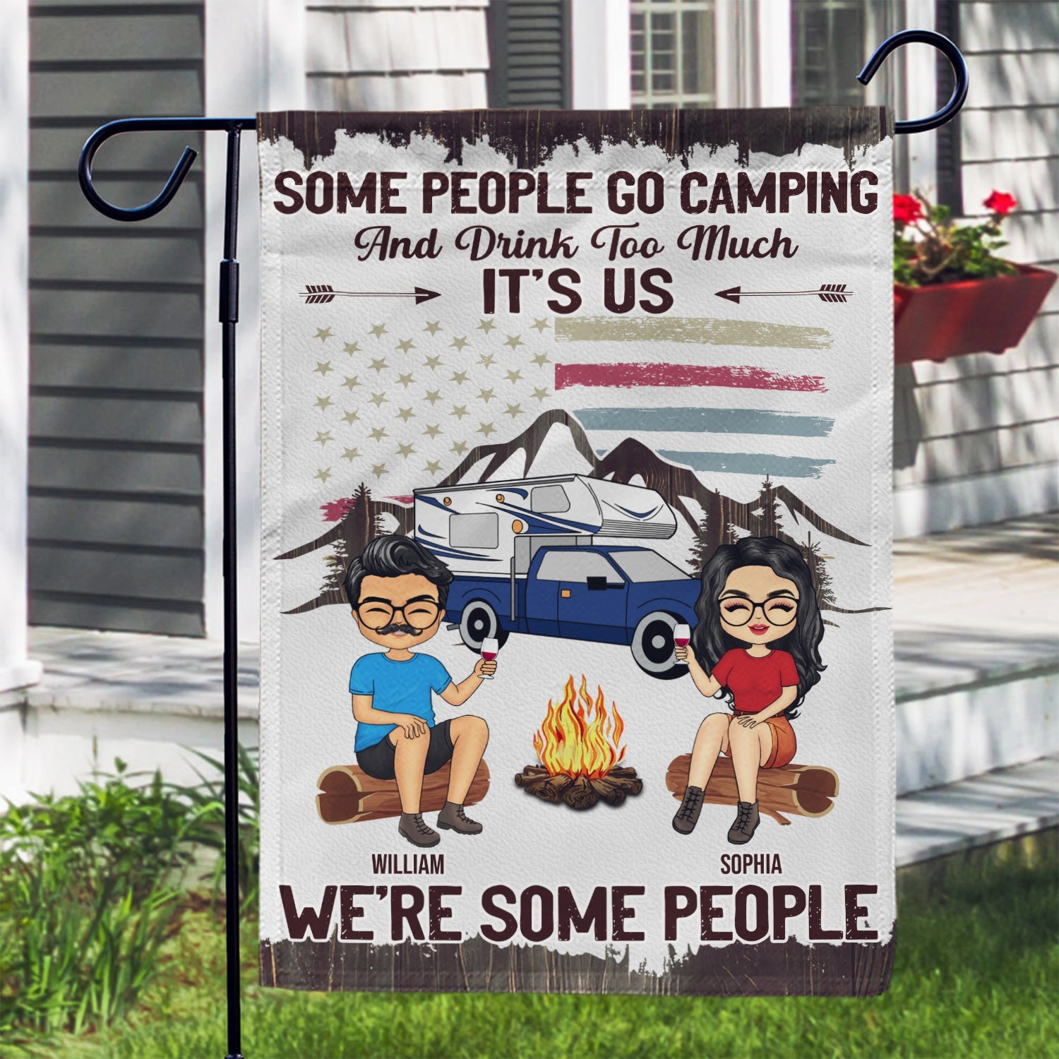We're Drunks We Go Camping, Stars And Stripes - Campsite Decor Gift For Best Friends, Besties, Family, Campers - Personalized Custom Flag