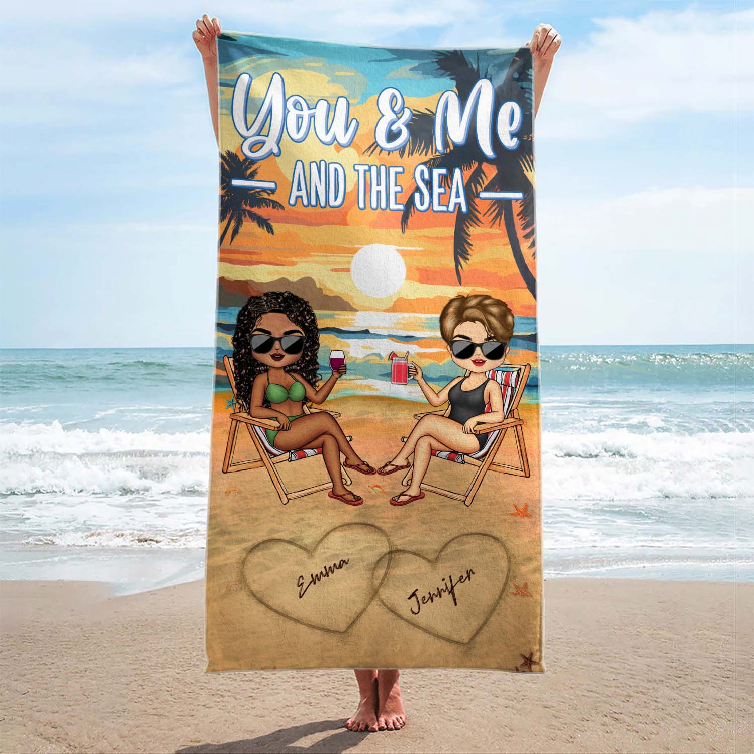 You And Me And The Sea Traveling Beach Swimming Picnic Vacation - Birthday, Funny Gift For Her, Him, Couples, Family - Personalized Custom Beach Towel