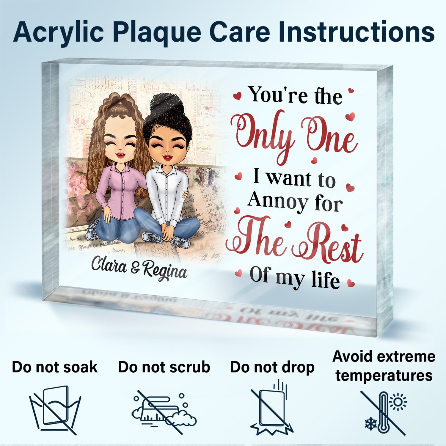 Our Personalized Rectangle Shaped Acrylic Plaque is the perfect keepsake to honor your friends and loved ones or commemorate your life's biggest moments and events. You can easily customize your treasured images and words to make a lasting remembrance that you will cherish forever.