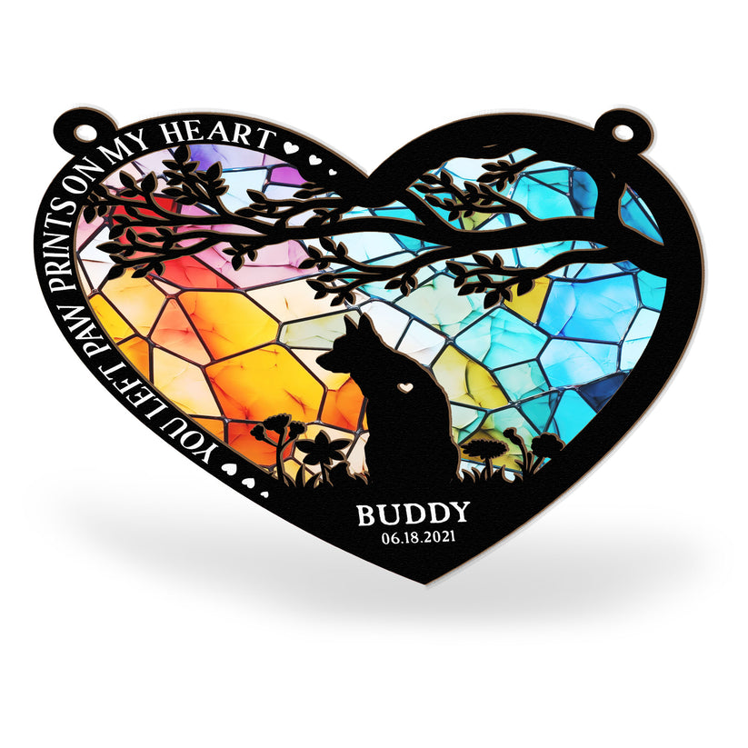 You Left Paw Prints On My Heart - Personalized Window Hanging Suncatcher Ornament