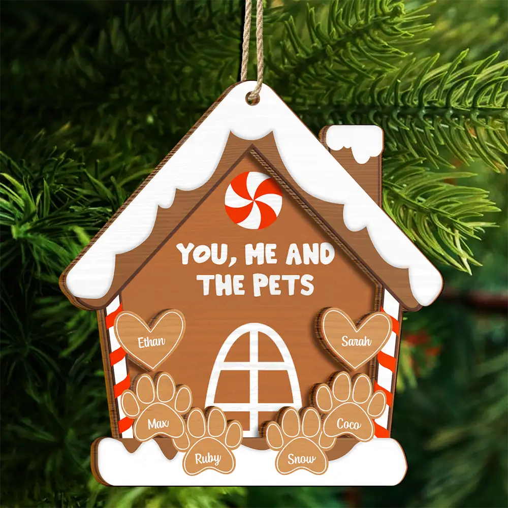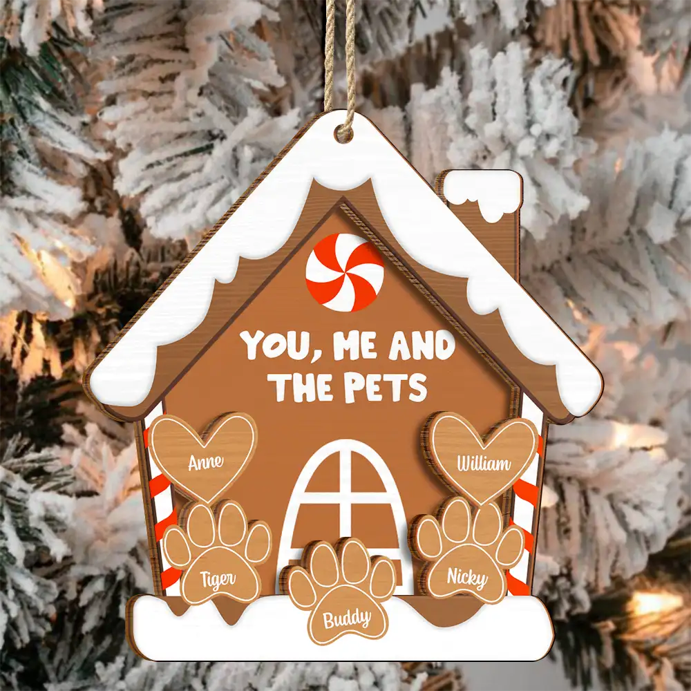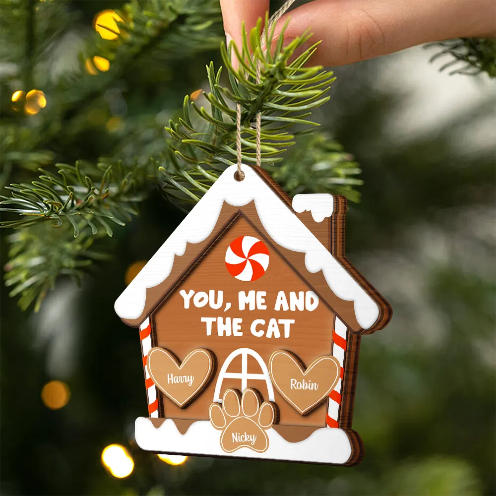 You, Me And The Dog Cat - Personalized 2-Layered Wooden Ornament
