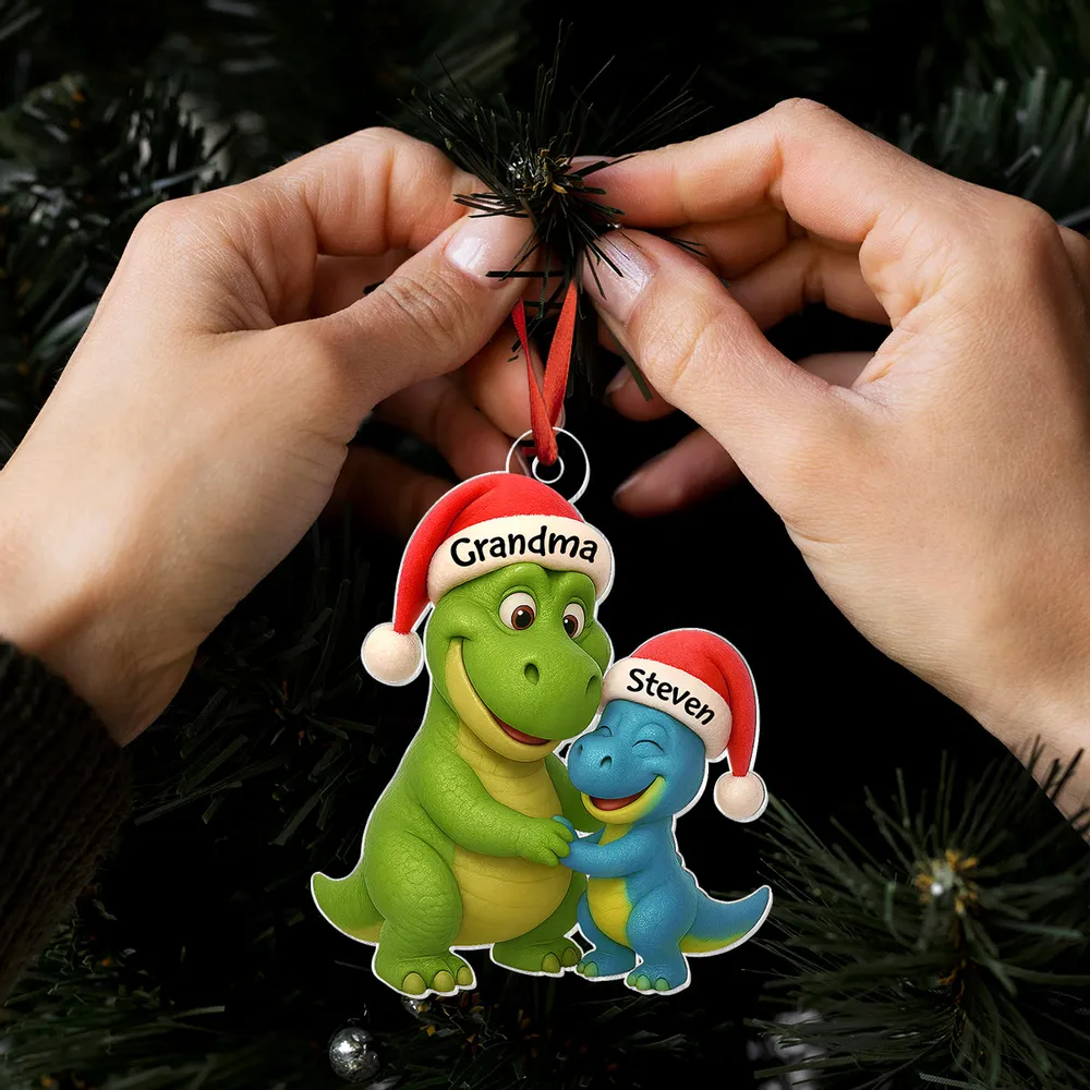 3D Effect Heartwarming Grandmasaurus Hugging Dinosaur Grandkid - Personalized Acrylic Ornament - Fun & Unique Gift For Grandkids