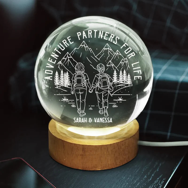 Adventure Partners For Life - Personalized Crystal Globe Lamp