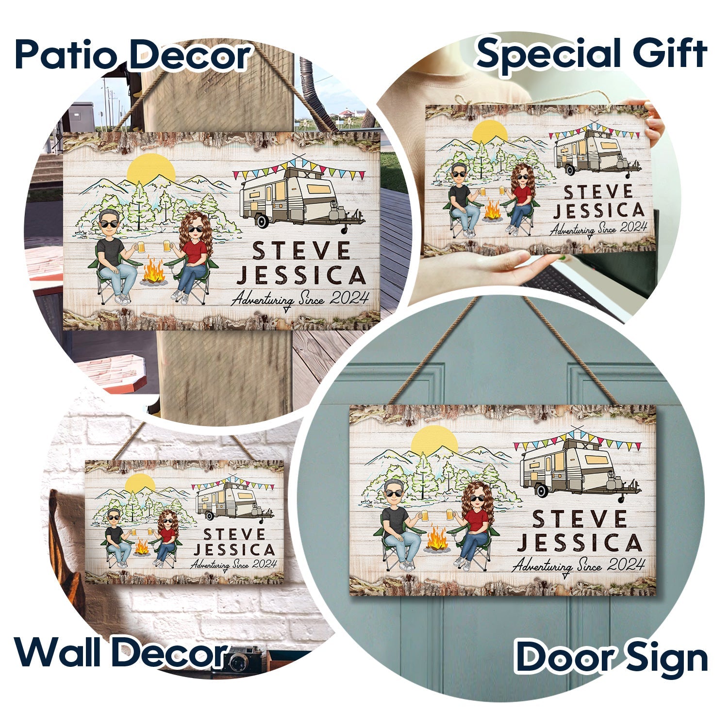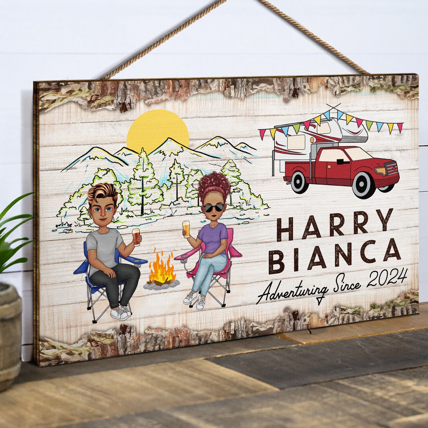 Adventuring Since - Gift For Camping Lovers, Camping Couples - Personalized Wood Rectangle Sign