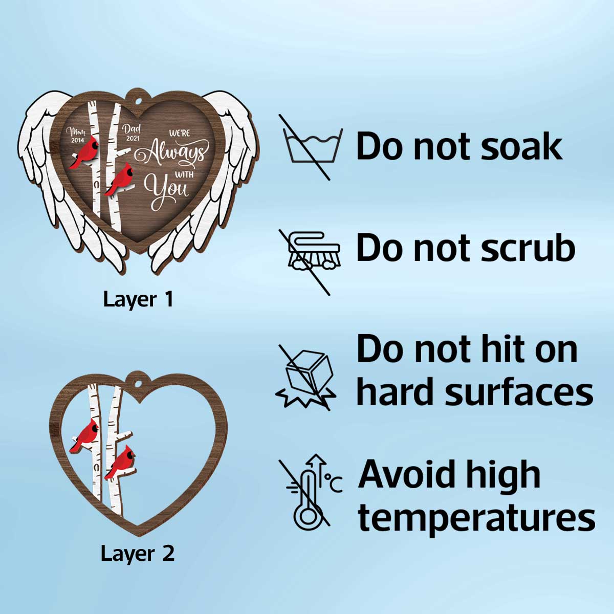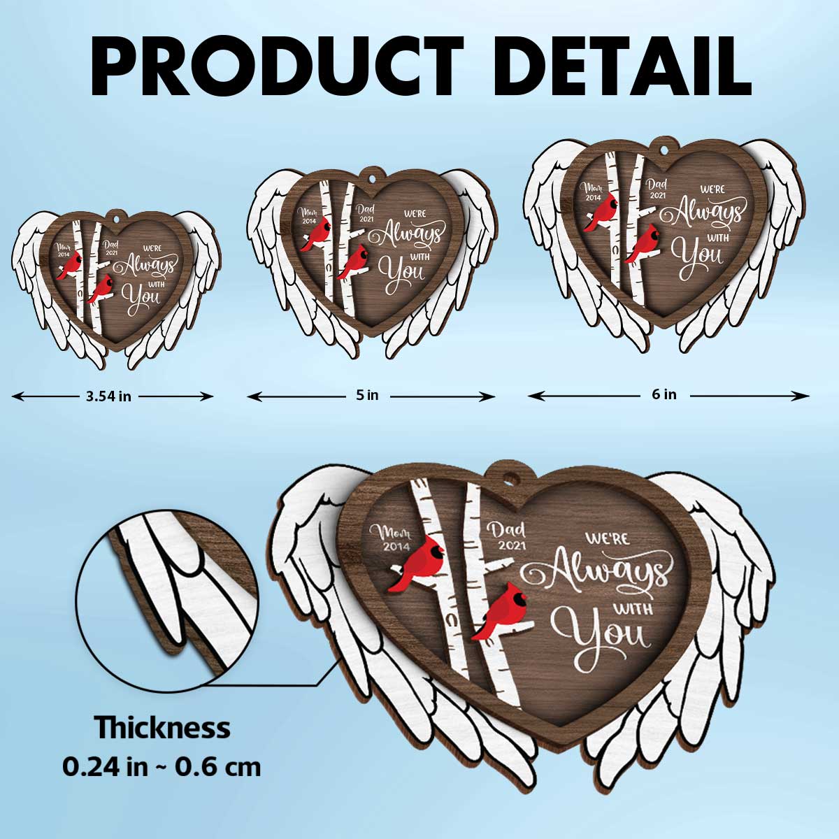 Always With You Cardinal Angel Wings Memorial Keepsake Personalized 2-Layer Wooden Ornament