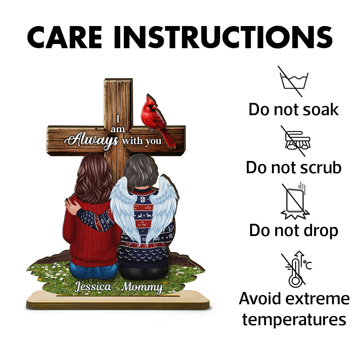 Always With You Family Memorial Remembrance Keepsake Cross Personalized 2-Layer Standing Wooden Plaque