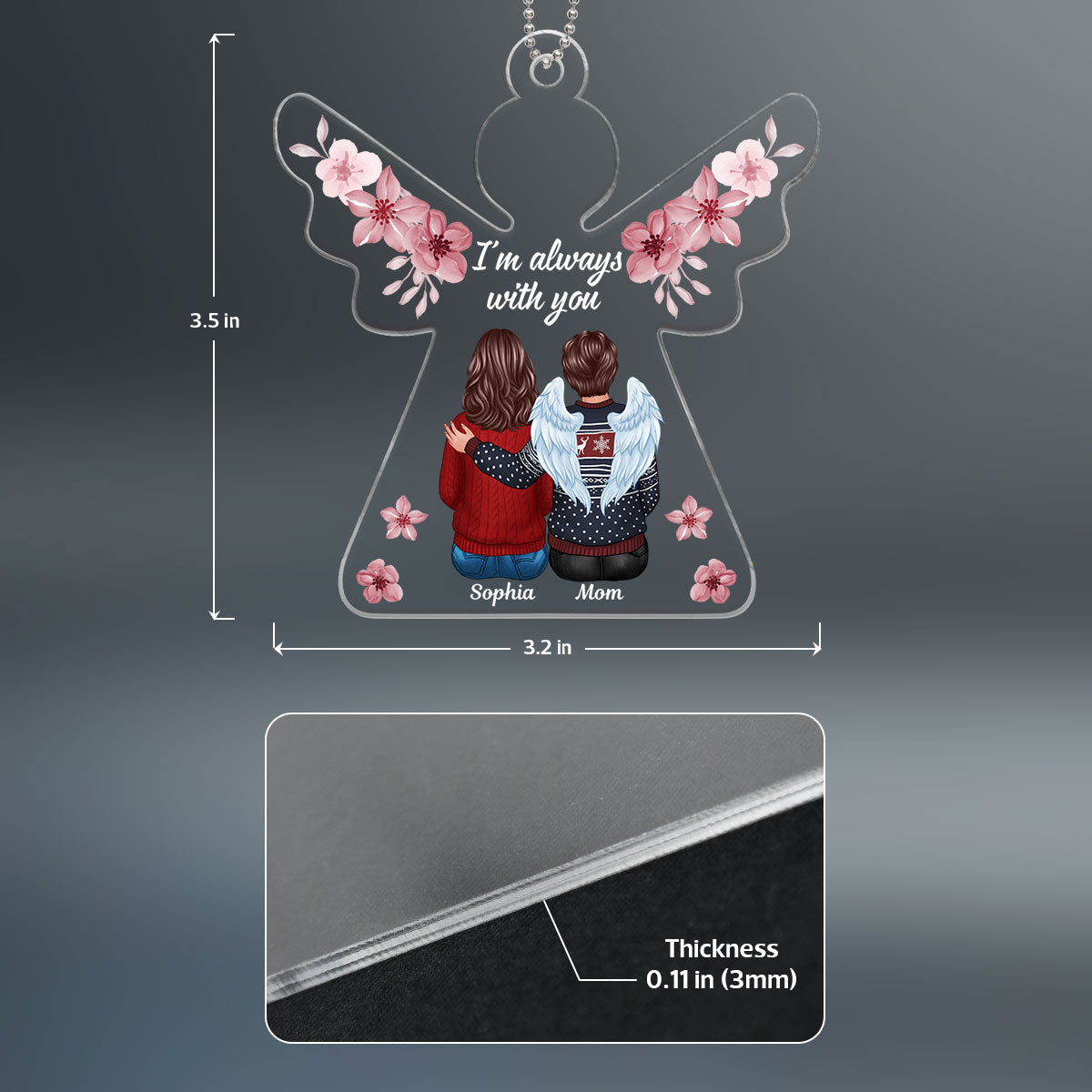 Always With You Pink Flowers Angel Shaped Memorial Keepsake Personalized Acrylic Ornament