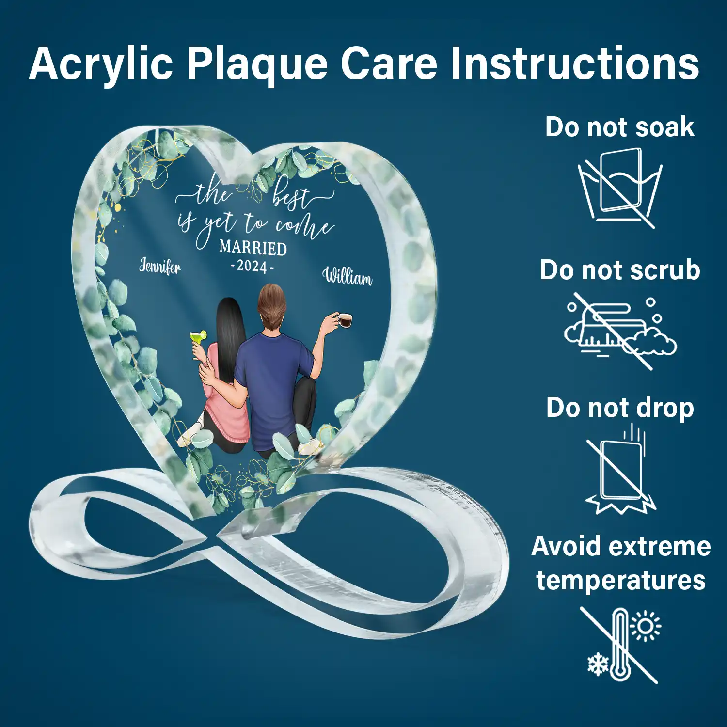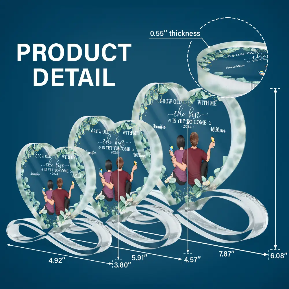 Celebrate your love story with the Backside Couple Newly Engaged The Best Is Yet To Come - Personalized Heart Infinity Shaped Acrylic Plaque, a unique and sentimental gift perfect for Couples, Husbands, Wives, moms, dads, boyfriends, and girlfriends. Whether it's for a Wedding, Valentine's Day, Mother's Day, Father's Day, Thanksgiving, Christmas, birthdays, or anniversaries, this personalized plaque is a heartfelt way to honor your special bond.