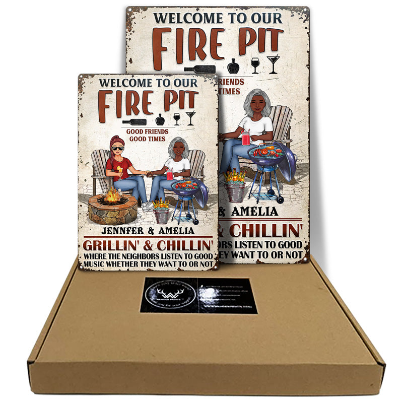 Backyard Bar Family Couple Listen To The Good Music - Patio Sign - Personalized Custom Classic Metal Signs