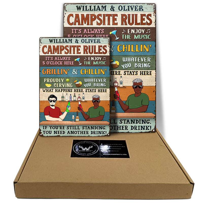 Bar Rules What Happens Here Stays Here Grilling Patio Couple Husband Wife Vintage - Backyard Sign - Personalized Custom Classic Metal Signs