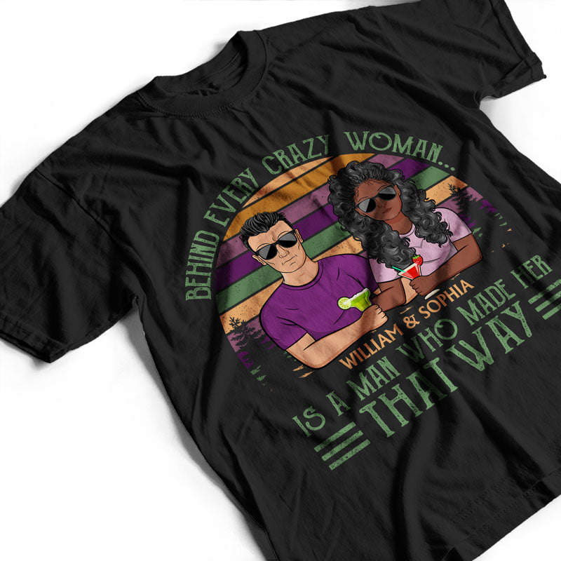 Behind Every Crazy Woman Is A Man Who Made - Family Couple Gifts - Personalized Custom T Shirt