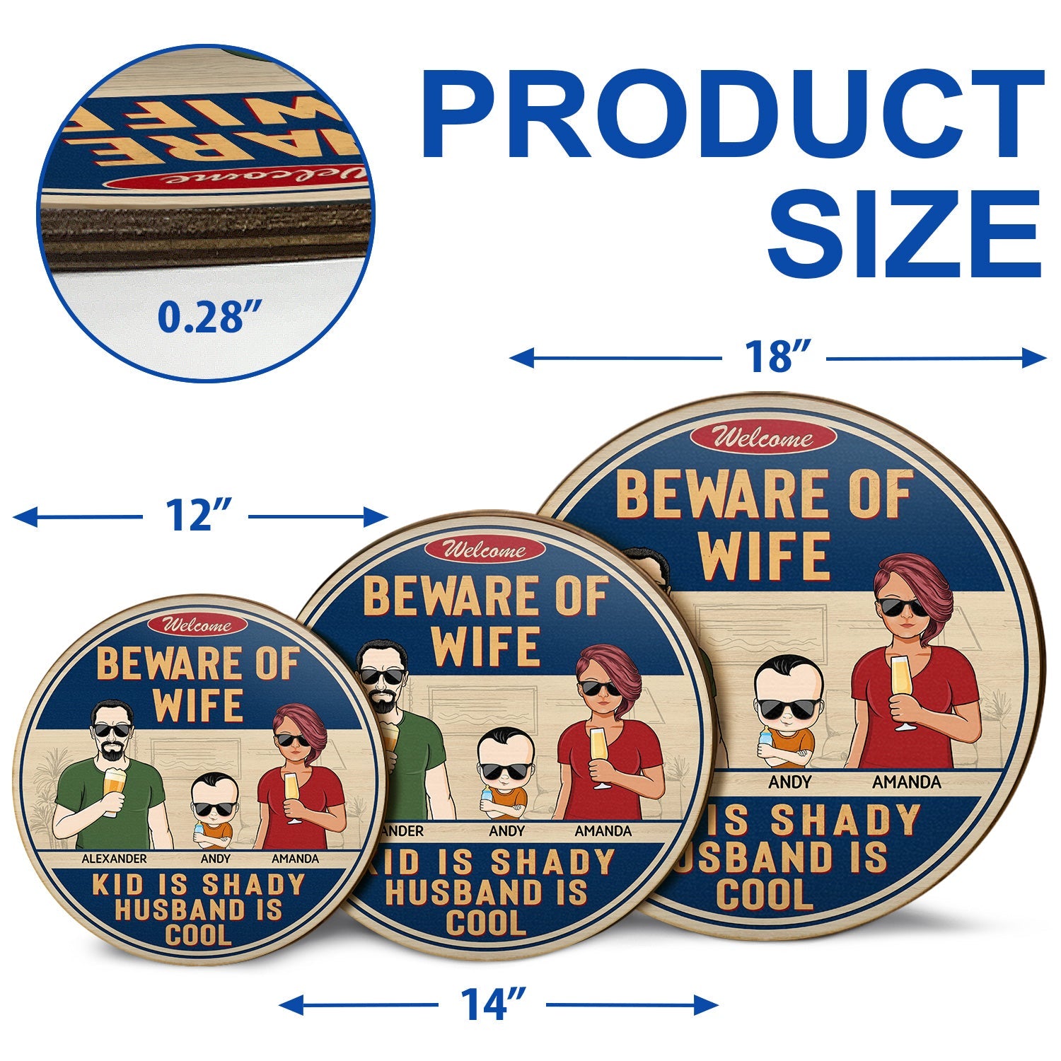 Beware Of Wife Kids Are Shady Husband Is Cool Couple Husband Wife Family - Personalized Custom Wood Circle Sign