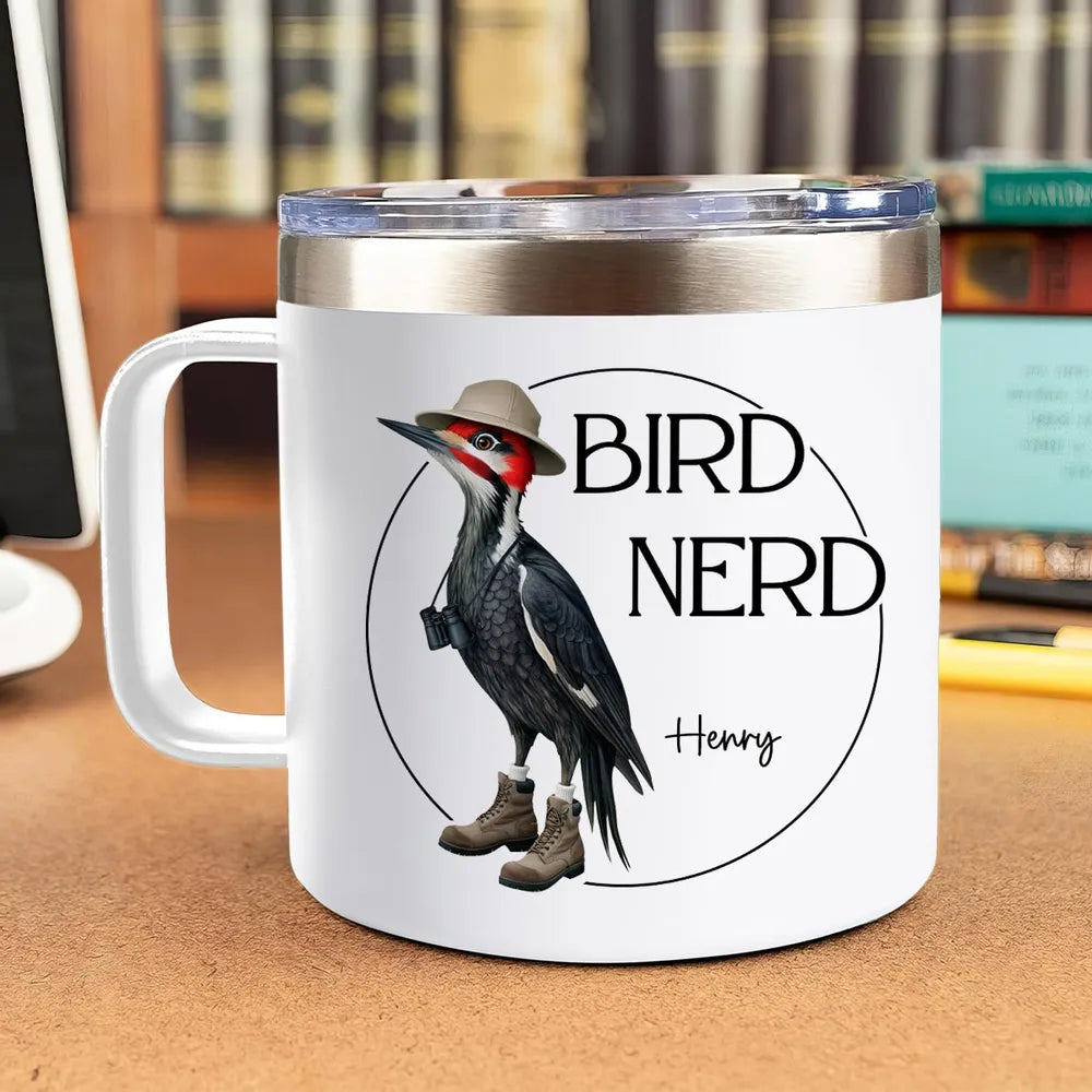 Bird Nerd Funny Gift For Bird Watcher Bird Twitcher Bird Lover Personalized Stainless Steel Tumbler With Handle