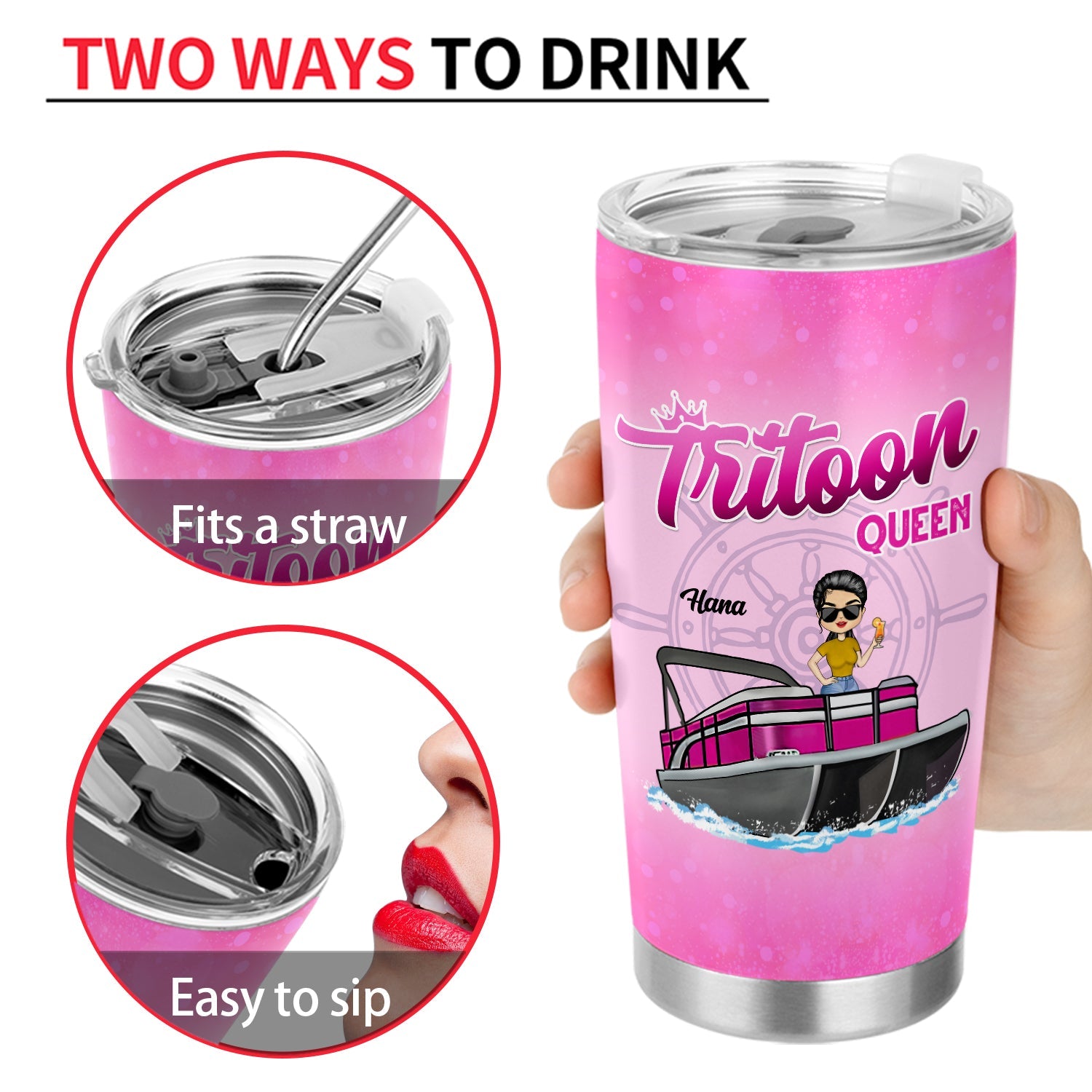 Boating Pontoon Queen - Traveling, Cruising Gift For Pontooning Lovers, Lake Lovers, Travelers, Women - Personalized Custom Tumbler