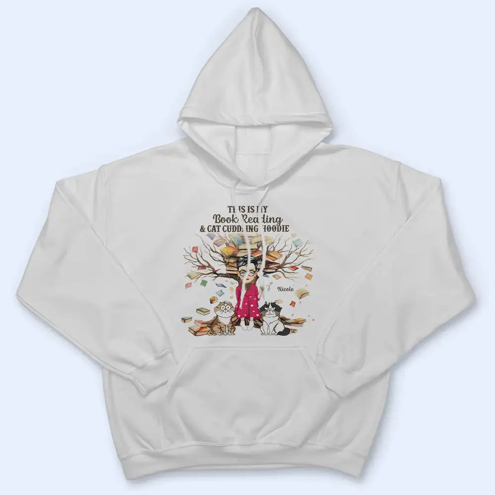 Delight in cozy moments with the Book Reading & Cat Cuddling T Shirt - Personalized T Shirt, a thoughtful choice for Pet Lovers, Pet Moms, Pet Dads, Cat Lovers, Cat Moms, Cat Dads, and yourself on Mother's Day, Father's Day, Thanksgiving, Christmas, birthdays, and anniversaries. This happy T-shirt combines two loves—reading and cats—making it a unique and meaningful gift for all who cherish a quiet, delightful moment with their favorite book and feline friend.