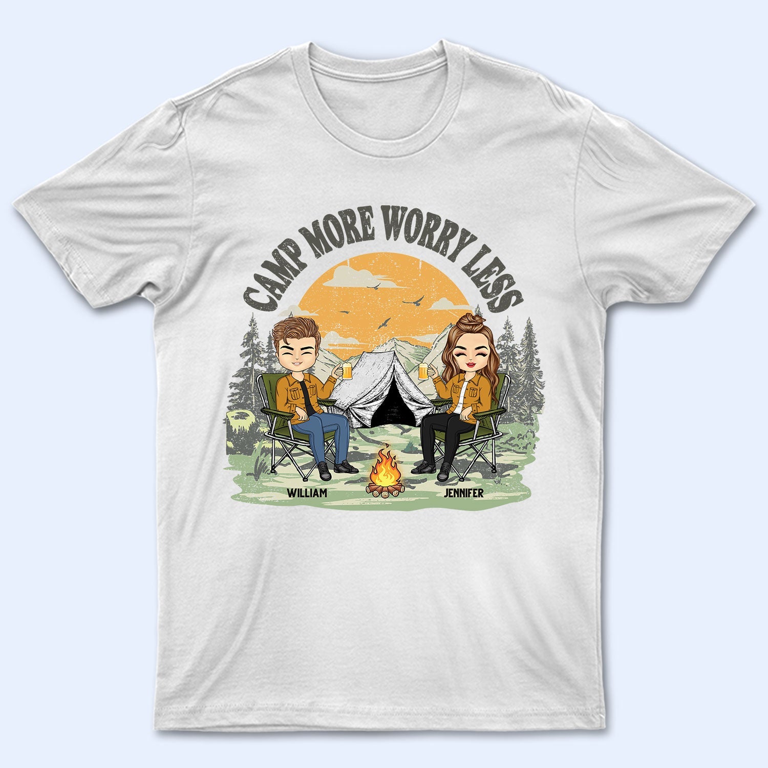 Camp More Worry Less - Gift For Couples, Besties - Personalized Custom T Shirt