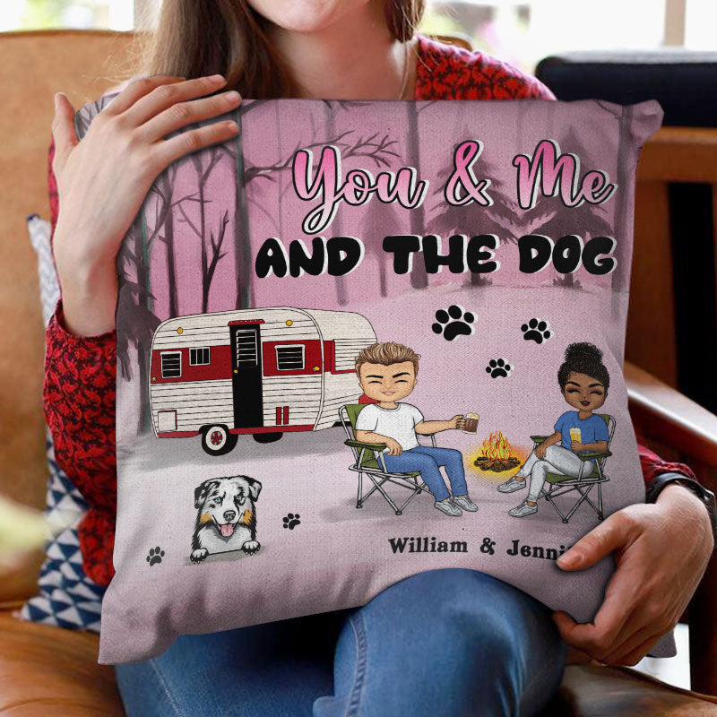 Camping Chibi Couple & Dog - Personalized Custom Pillow