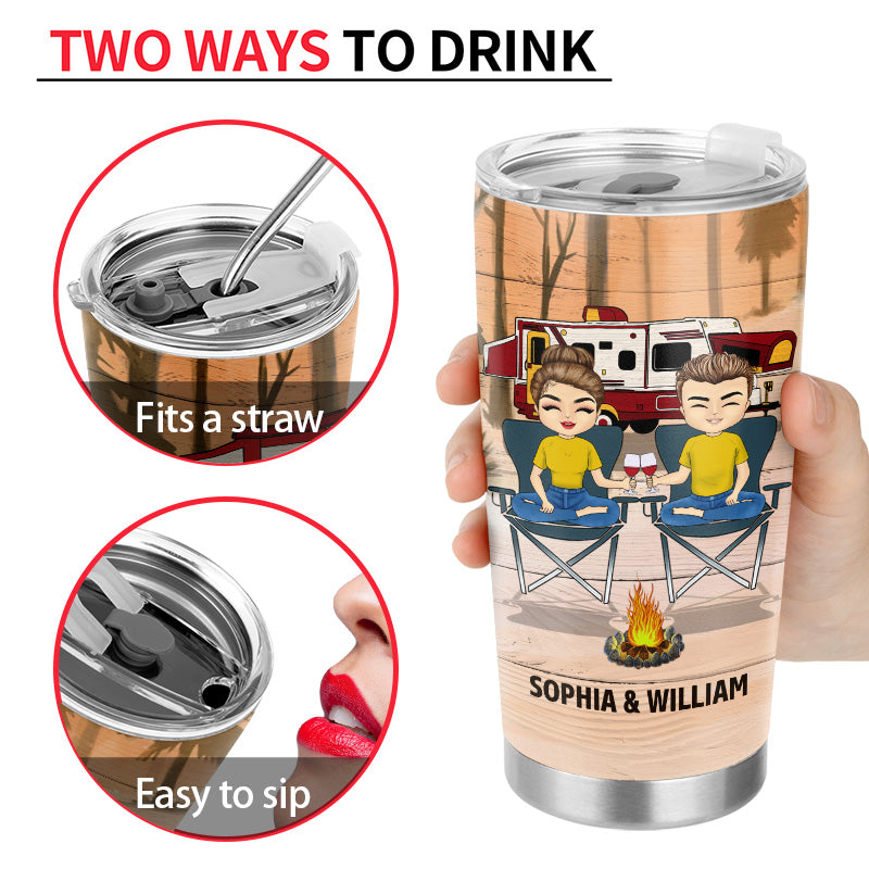 Camping Chibi Couple Let's Sit By The Campfire - Personalized Custom Tumbler