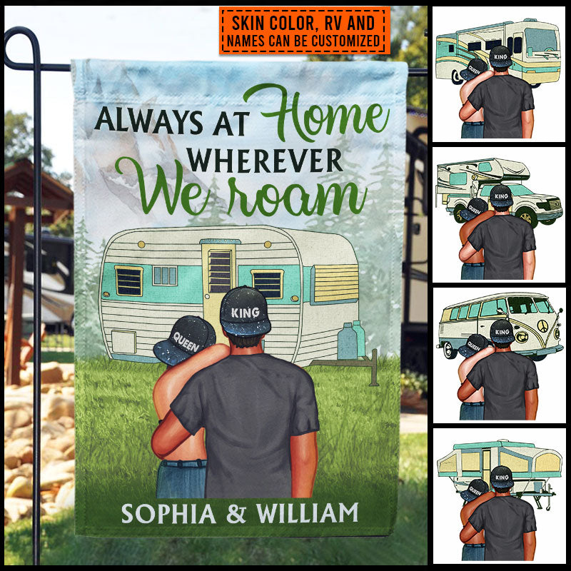 Camping Couple Campers Travelers Always At Home Custom Flag