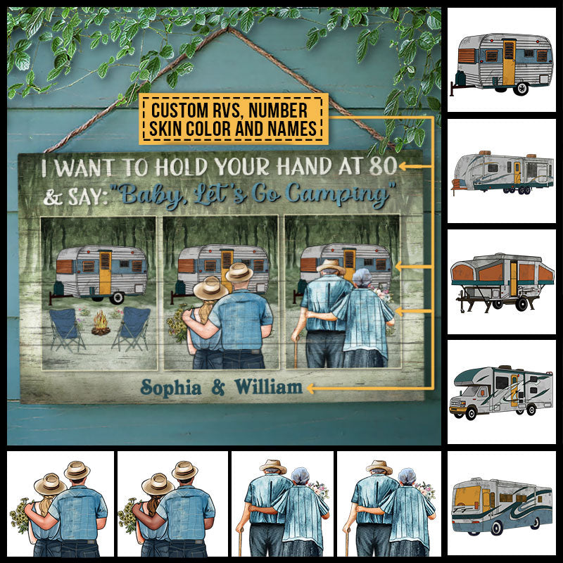 Camping Couple Let's Go Camping Skin Custom Wood Rectangle Sign