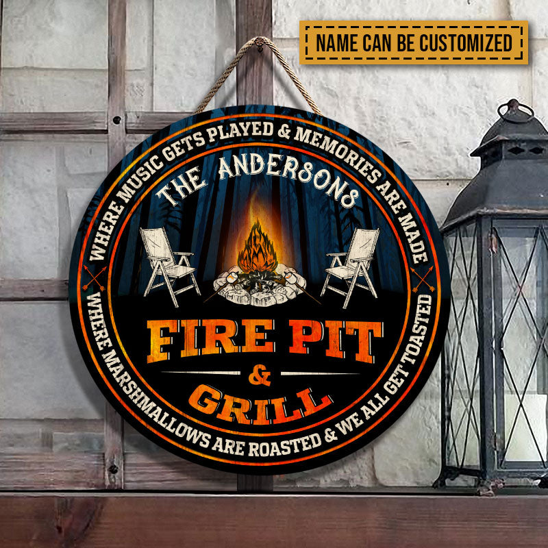 Camping Fire Pit & Grill Get Toasted Custom Wood Circle Sign, Camping Decoration, Camping Gift