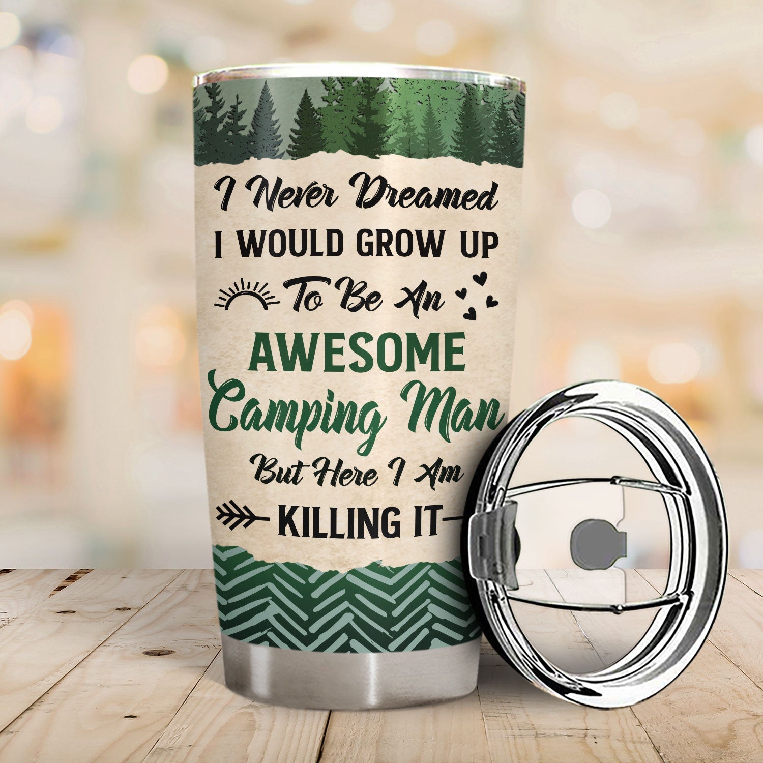 I never dreamed I would grow up to be an awesome camping man but here I am killing it".