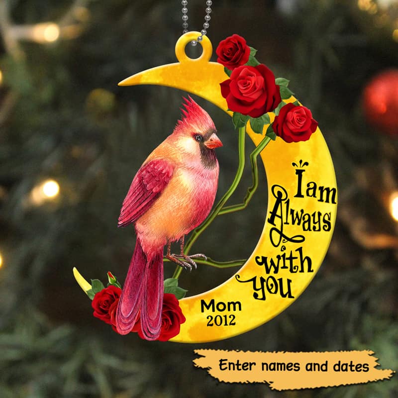 Cardinal Memorial Moon Rose Personalized Acrylic Ornament