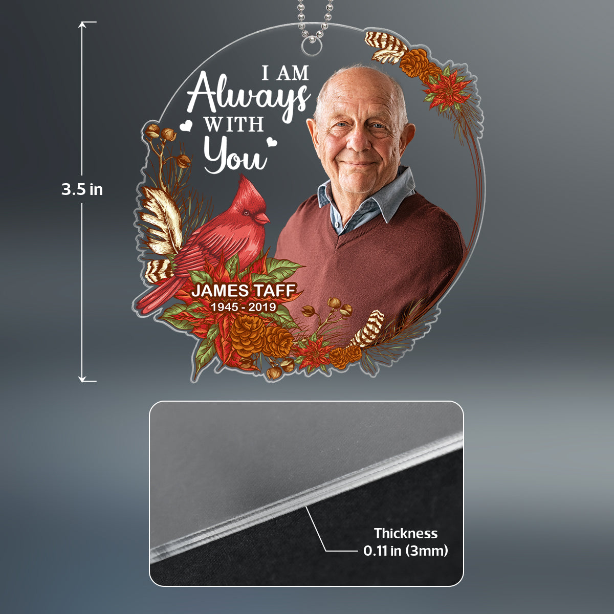 Cardinal Poinsettia Wreath Always With You Photo Inserted Family Memorial Keepsake Sympathy Remembrance Gift Personalized Acrylic Ornament