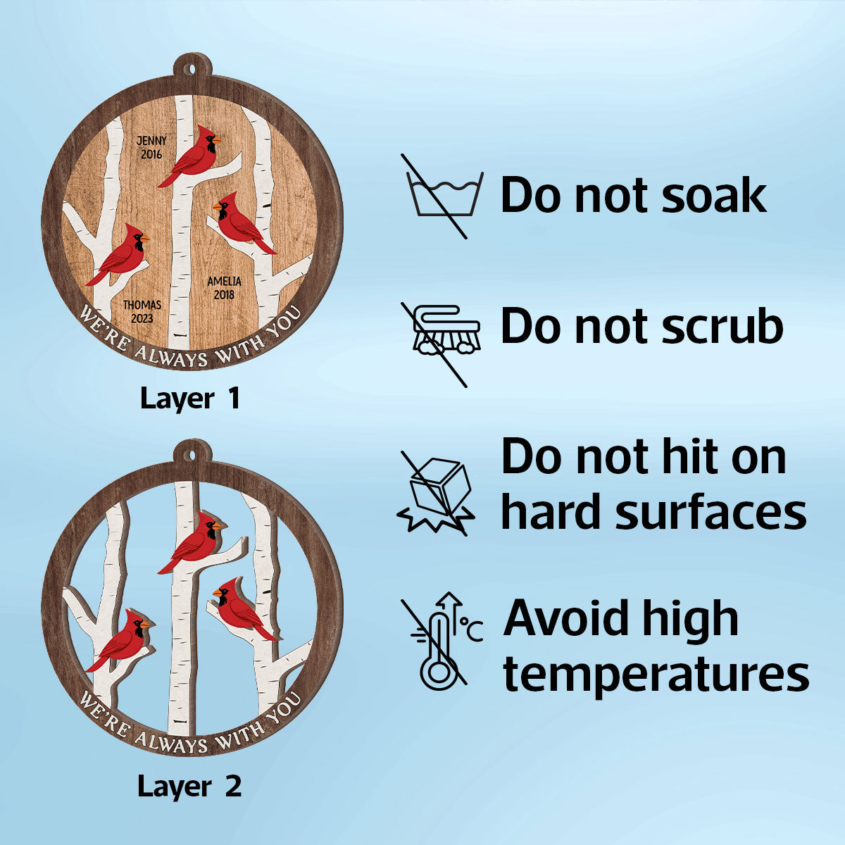 Cardinals Birch Tree Christmas Memorial Personalized 2-Layer Wooden Ornament, Sympathy Gift, Memorial Gift