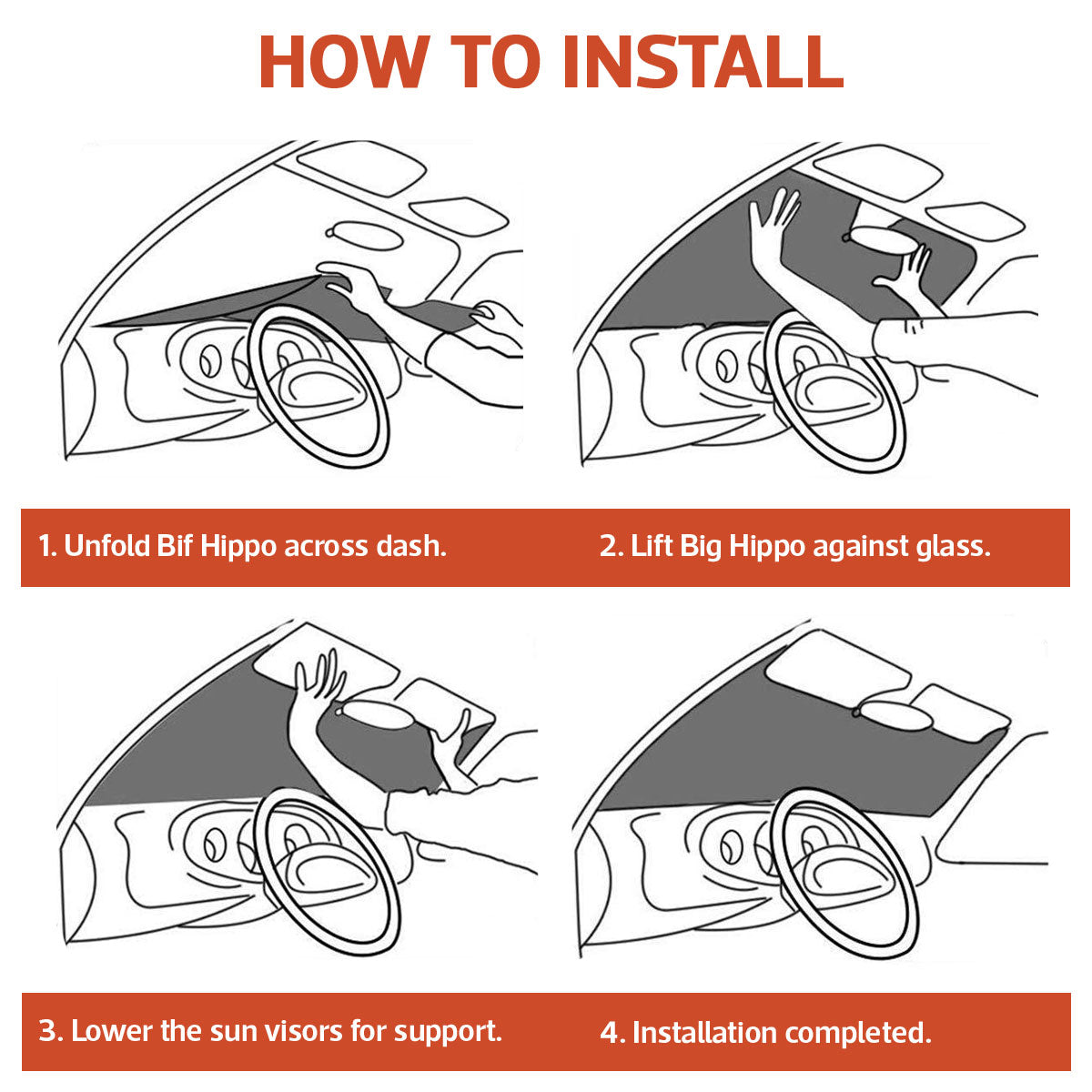 • Feature: Fits most cars, trucks and SUVs, provides protection against UV rays and sun damage while reducing interior heat – no more fading & heat damage. Durable to use, lightweight and portable, easy to install and remove (no harm to your windshield).