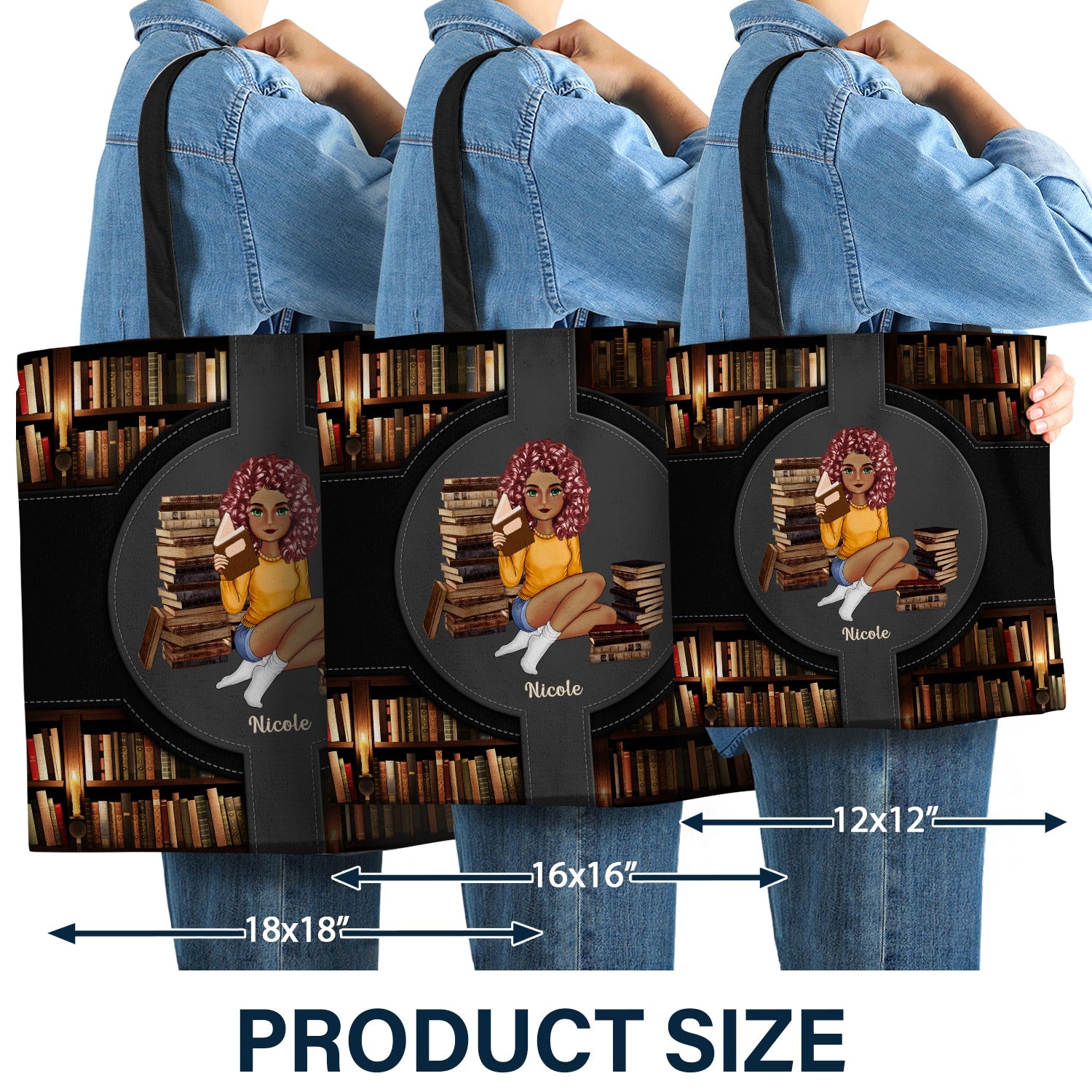 Cartoon Just A Girl Who Loves Books - Gift For Reading Lovers - Personalized Zippered Canvas Bag