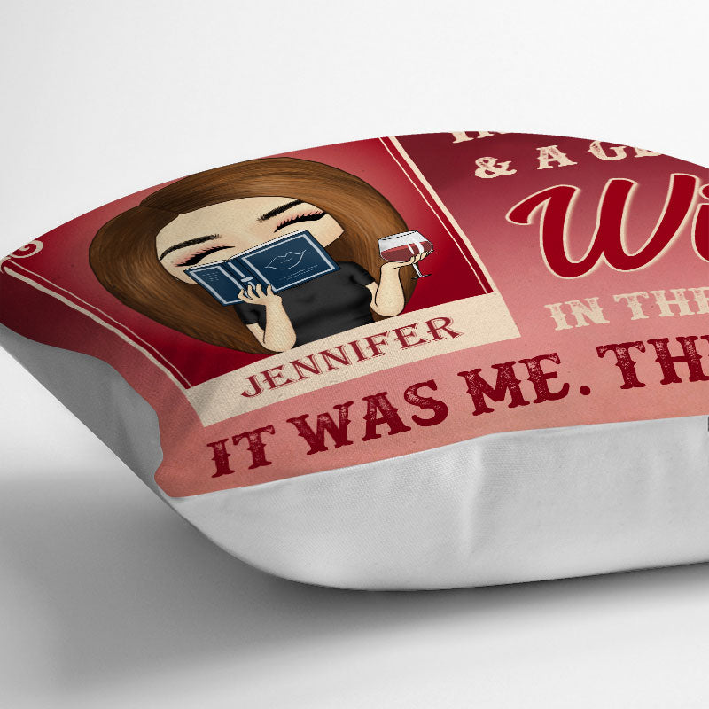 Chibi Girl A Book In One Hand & A Glass Of Wine In The Other - Personalized Custom Pillow