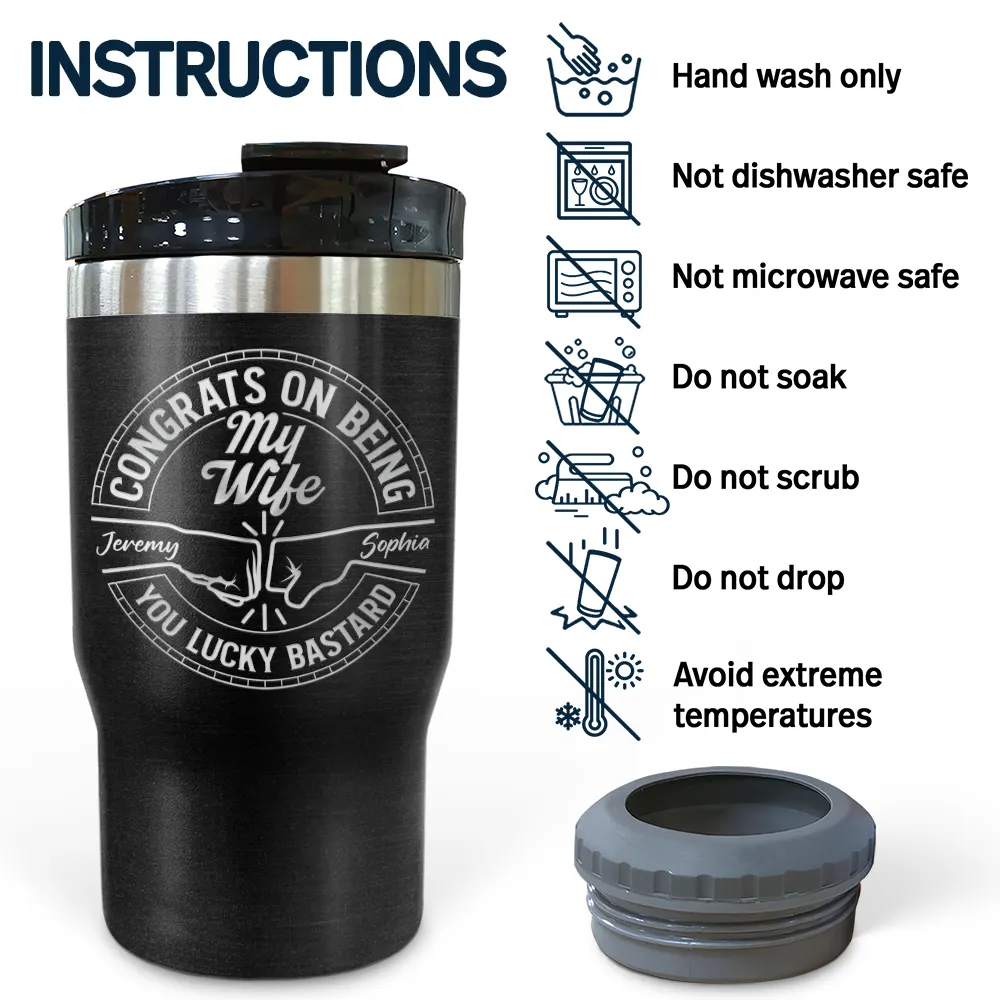 The "Congrats On Being My Brother You Lucky Man - Personalized Triple 3 In 1 Can Cooler" is the perfect gift for brothers, besties, and men who enjoy a good laugh. Featuring a funny, cool, and hilarious design, this personalized can cooler is both functional and entertaining. Whether it’s for Thanksgiving, birthdays, anniversaries, holiday, or just as a gag gift, this unique piece will surely bring joy and laughter to any occasion.